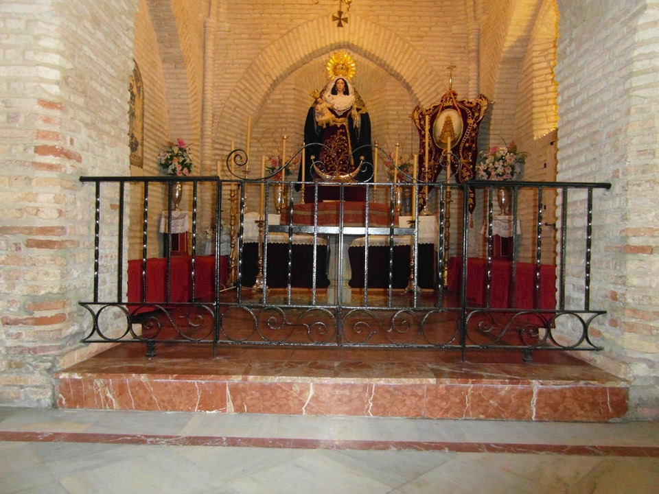 Aprovechando la inutilidad de la antigua reja, se aprovechó parte de ella para cerrar la Capilla Bautismal de la Parroquia de la Asunción de Almonte.