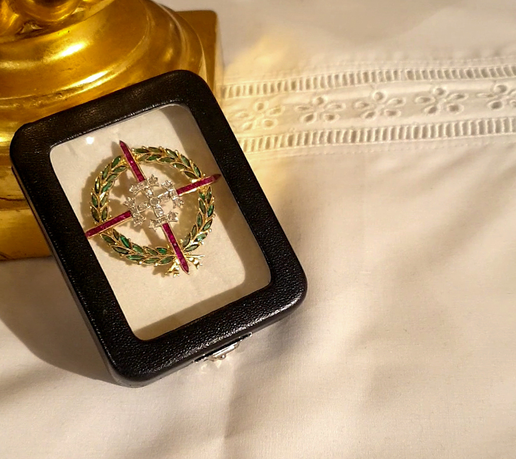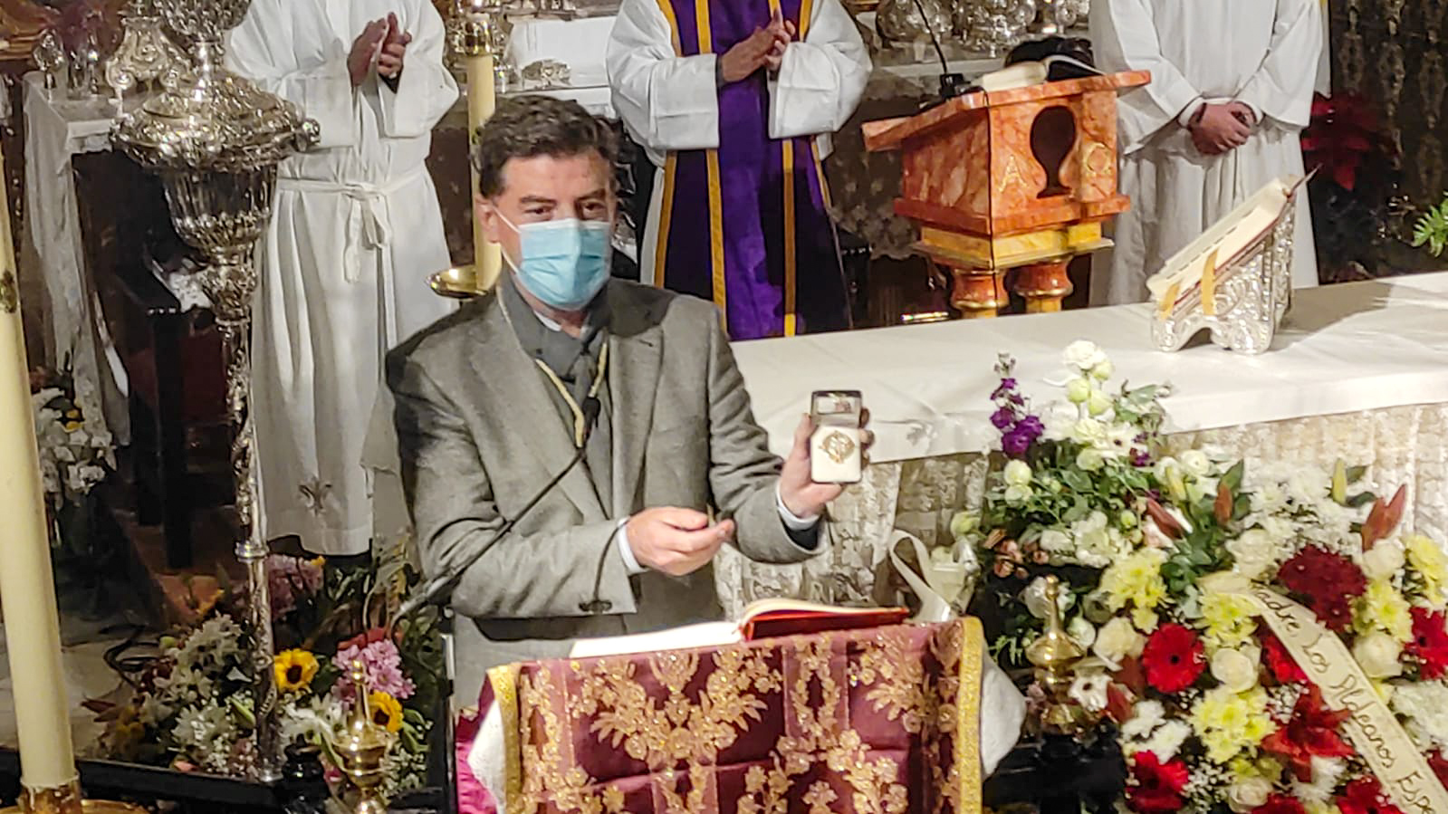Por otra parte, Dña. Carmen López-Saez, nieta del General García-Escámez e Iniesta, onubense que obtuvo la condecoración militar de la Cruz Laureada de San Fernando, ha querido que ahora la Virgen tenga el broche de esta distinción. Fue una promesa que López-Saez hizo la Virgen, tras quedarse embarazada. Hoy, ha sido su hijo quien ha hecho la entrega de esta Cruz de su bisabuelo.