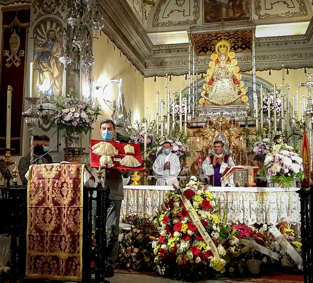 A la finalización de la Sabatina de esta noche, hemos recibido dos donaciones para la Virgen del Rocío. La Casa de Andalucía de Tarragona ha hecho entrega de un juego completo de ropa interior para el ajuar del Pastorcito, que ha sido confeccionado por nuestro hermano, José Manuel Vega.