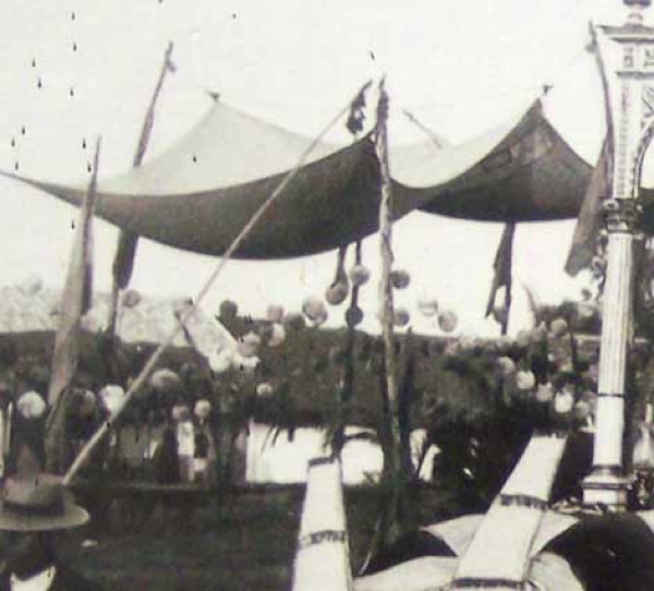 El día 6 de junio a las tres de la tarde pasó el Cardenal Almaraz por Almonte y a las seis llegaba a la Aldea del Rocío siendo aclamado por la multitud que lo esperaba. Le acompañaban: D. Juan Fco. Muñoz y Pabón, el Sr.Provisor del Arzobispado, D. Miguel Castillo Rosales, el secretario de Cámara y Gobierno, D. Eugenio Almaraz y Santos, el Capellán de S.E. D. Ildefonso Caraballo y los familiares Sres. Silva y Fdez. Carrión. Fue recibida su Eminencia por la Hdad. de Almonte, entrando en la iglesia y orando ante Ntra. Sra.