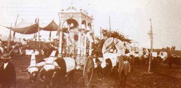 El Rocío, decía yo hace años en un artículo que corre por ahí, debiera ser declarado «monumento nacional». No aquella poética ermita de las marismas almonteñas, con ser, como lo es en efecto, el relicario de todos los amores del Condado y del Aljarafe… el lacrimatorio de las penas de aquel terruño, como propiciatorio que es de las grandes misericordias de la Reina y Madre de misericordia: sino el Rocío-costumbre; el Rocío-institución: el Rocío, carreta del sin-pecado… el Rocío, tamboril y dulzaina… el Rocío, promesa y el Rocío, exvoto … el Rocío, peregrinación á pie y el Rocío, penitencia… el Rocío, rosario y sermón que no se oye, porque los vivas son más elocuentes que los razonamientos… el Rocío, procesión, que há menester para desenvolverse, y aun así le viene estrecha, toda la inmensidad de la marisma… ¡Todo esto es lo que yo quisiera que se declarase monumento nacional!-esto es: intangible-para que los venideros lo heredasen, tal y como nosotros lo hemos recibido.