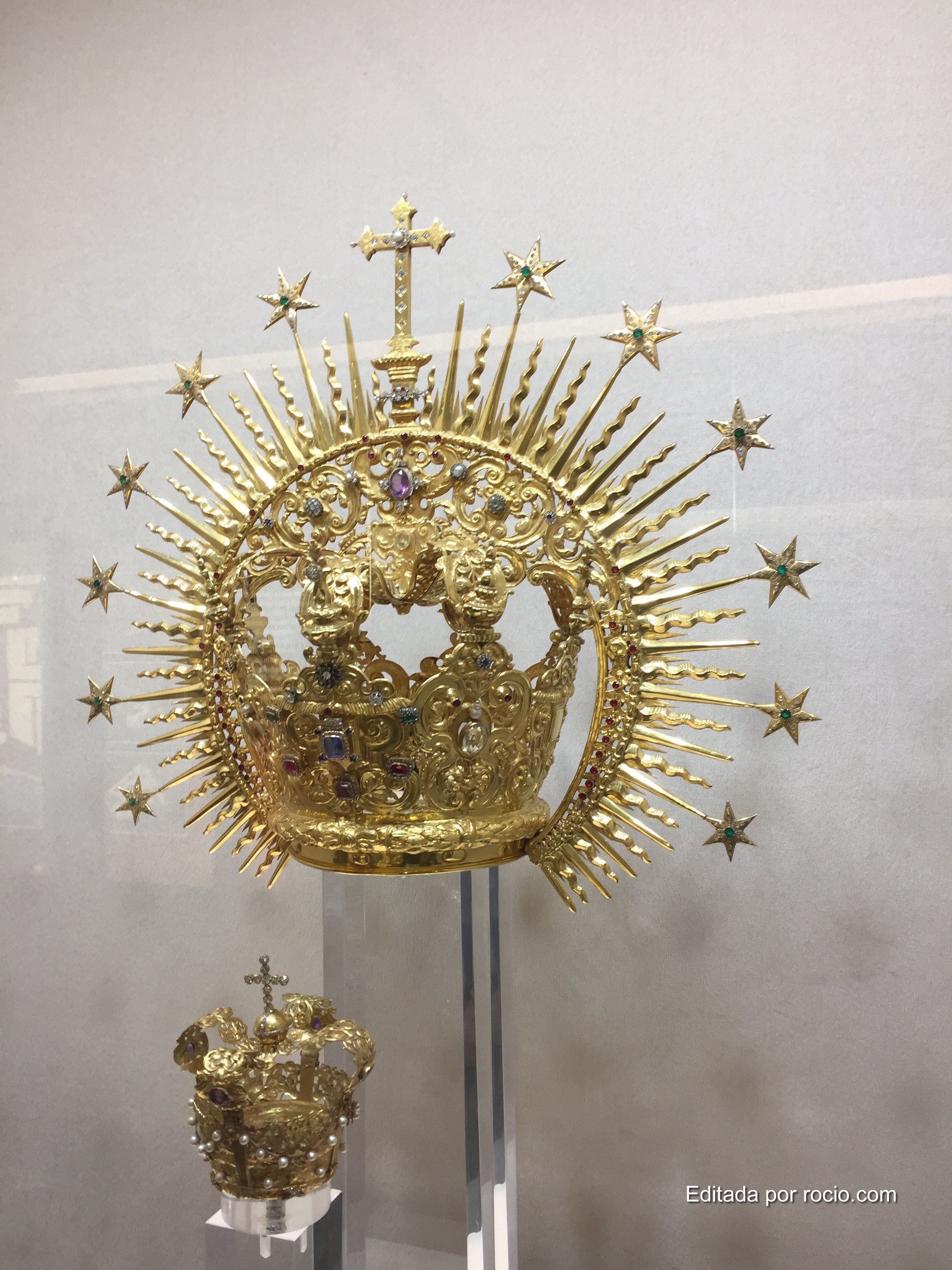 La corona de la Virgen fue obra de Don Ricardo Espinosa de los Monteros, utilizándose más de dos kilos y medio de oro, que provenían de donaciones particulares. Realizada en oro macizo y con gran cantidad de piedras preciosas, destacando entre ellas, un anillo del Cardenal Almaraz, otro del Nuncio de S.S., un alfiler de corbata de D. Manuel Pineda, y un brillante del Sr. Burgo Mazo.