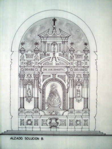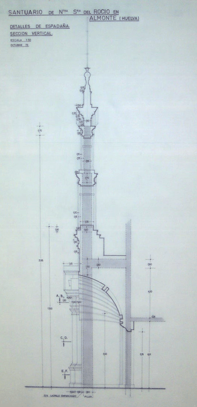 El dibujo de la cimentación, está diseñado por D. José Mª Pardo Alvarez, en montaje con la fotografía de Manuel Romero Triviño