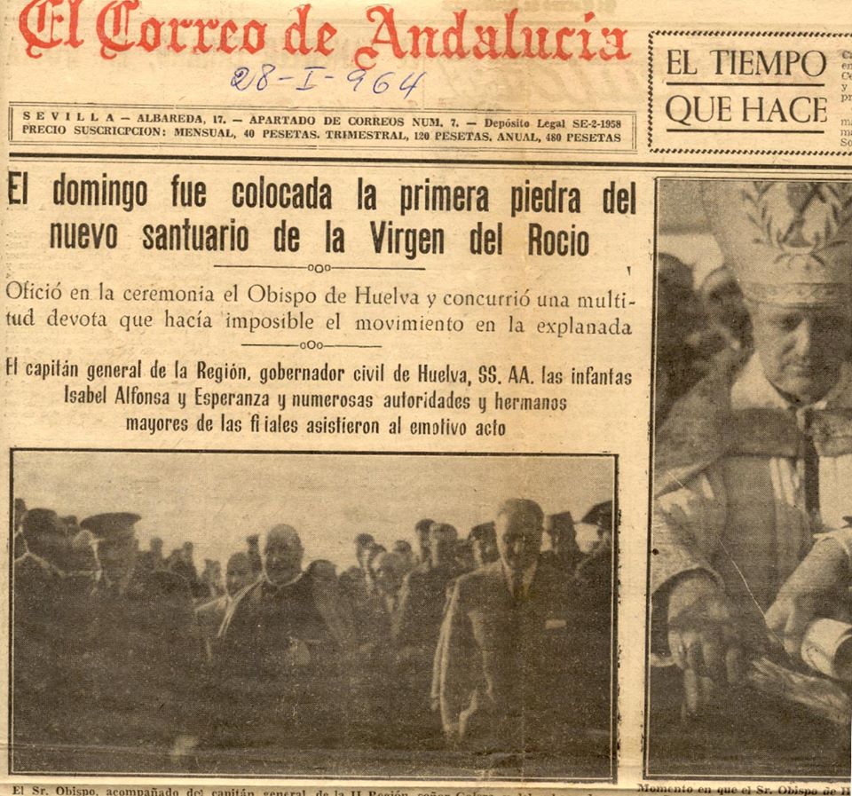 Por fin la urgente necesidad de levantar un nuevo Santuario en el Rocío recibió el impulso definitivo del primer obispo de Huelva, monseñor Cantero Cuadrado según nos contaba Infante Galán al tratar de los Santuarios que han albergado a la Virgen del Rocío.