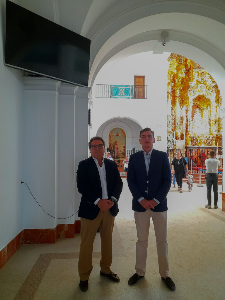 La entrega e instalación de las pantallas se llevó a cabo con la presencia de Manuel Alcocer, representante de Cityenvas, empresa colaboradora con la Fundación Ecotic. Durante el acto, Alcocer estuvo acompañado por Santiago Padilla, Presidente de la Hermandad Matriz de Almonte.
