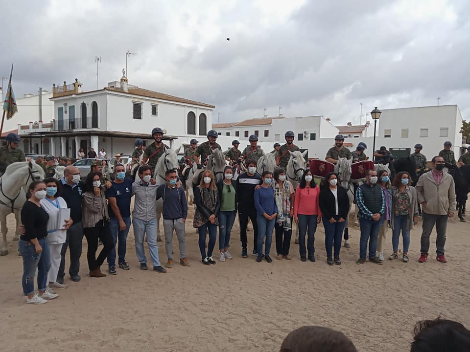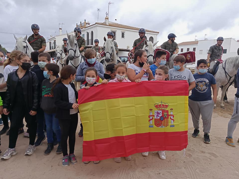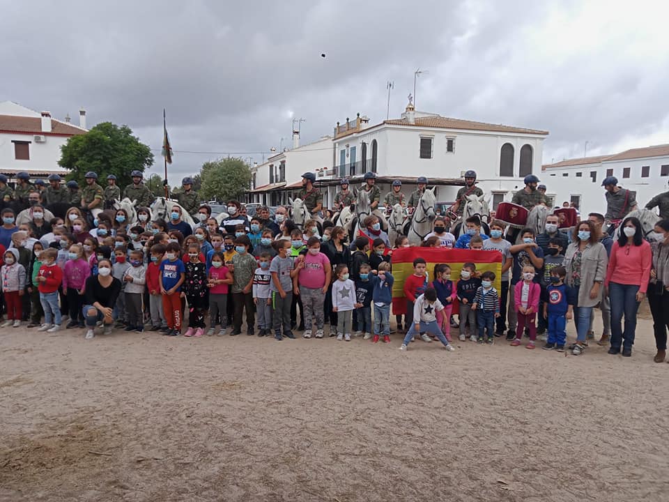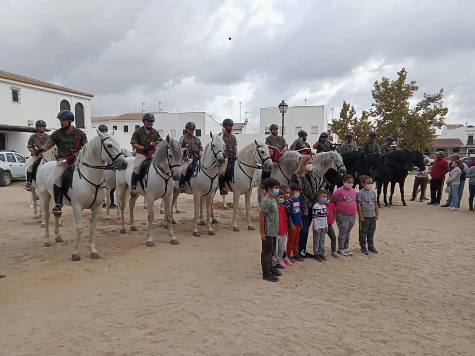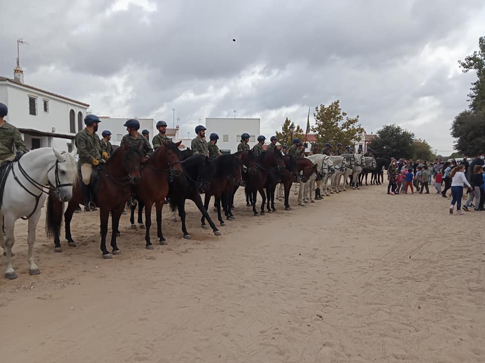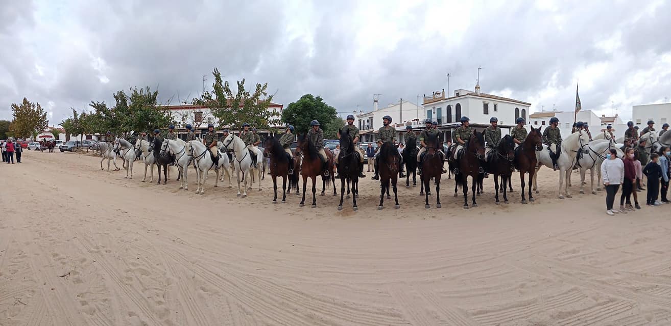 Multitud de almonteños se han echado a las calles para darle al cuerpo de élite al servicio de la Corona una calurosa bienvenida. Entre aplausos y el repicar de las campanas de la Parroquia de Ntra. Sra. de la Asunción, llegaban a la Plaza Virgen del Rocío a las 12 del mediodía.
