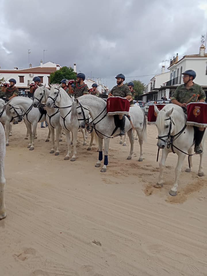 La Guardia Real se despliega estos días por toda la geografía de la provincia onubense, en el marco del ejercicio “Huelva 21”. A primera hora de esta mañana iniciaban el camino a caballo, desde El Rocío hasta Almonte, donde han visitado a la Virgen para realizar una ofrenda muy especial.