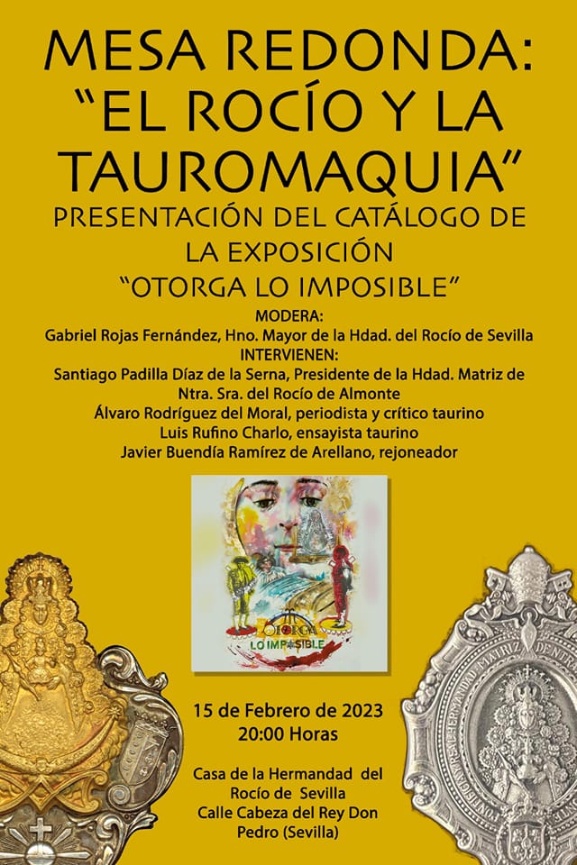 📚 El encuentro servirá de marco para presentar el catálogo de la gran exposición «Otorga Lo Imposible», que presentábamos el pasado viernes en El Rocío y que recoge la vinculación del mundo del toro con la devoción rociera.