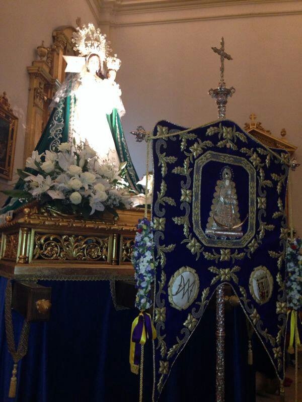 No podía faltar la ofrenda floral a Nuestra Patrona y la asistencia a la Procesión con nuestros Estandartes y Varas de Gobierno.