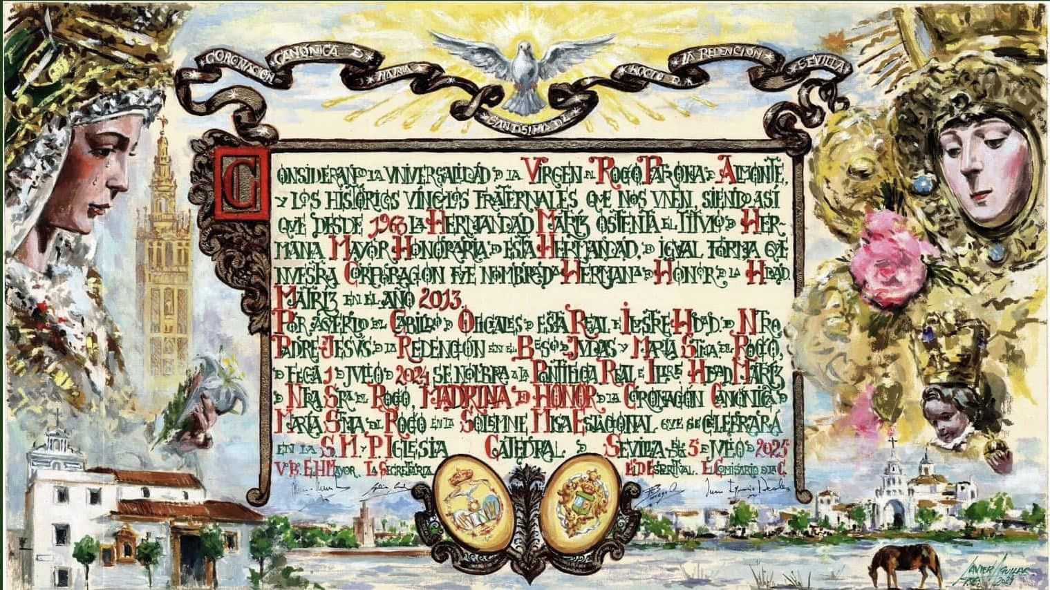 Por acuerdo del Cabildo de Oficiales de La Real Hdad. de Ntro. Padre Jesús de la Redención en el Beso de Judas y María Stma. del Rocío, con fecha 1 de julio de 2024 se nombra a la Pontificia, Real e Ilustre Hdad. Matriz de Ntra. Sra. del Rocío, MADRINA DE HONOR de la Coronación Canónica de María Stma. del Rocío en la Solemne Misa estacional que se celebrará en la S.M y P. Iglesia Catedral de Sevilla el día 5 de mayo de 2025.