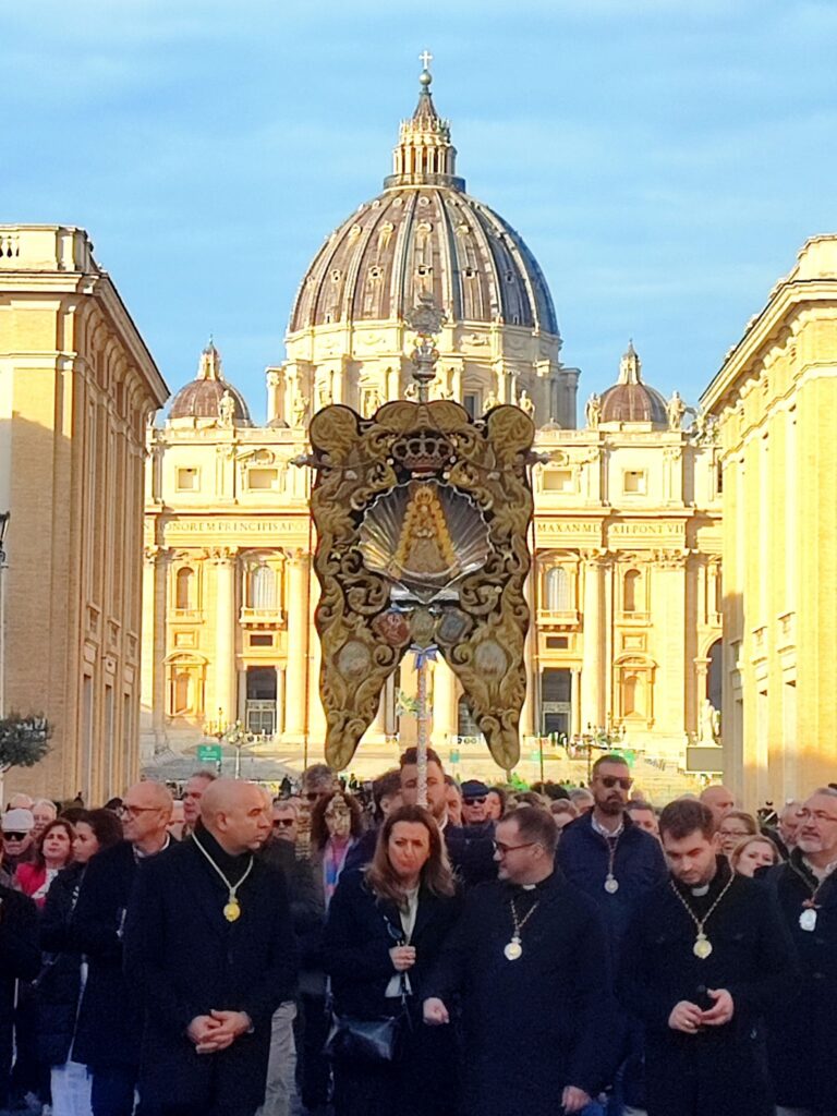 La Real Hermandad de Emigrantes de Nuestra Señora del Rocío de Huelva protagonizó ayer una jornada histórica y emotiva en Roma, marcada por la fe y la devoción rociera en el marco del Año Jubilar.