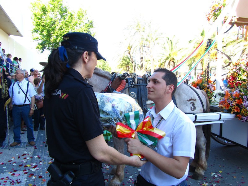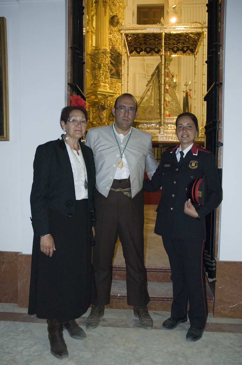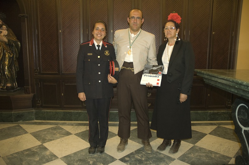 Antes de la procesión del la madrugada del lunes nos dedico un poco de su escaso tiempo el Sr. Antonio Mondaca Orihuela (delegado de prensa) de la Pontificia, Real e Ilustre Hermandad Matriz de Almonte, al que nuestra Presidenta Isabel y nuestra amiga Jenifer hicieron entrega de un libro sobre la historia de la Policía catalana. Detalle cedido por el área de protocolo del citado cuerpo policial.