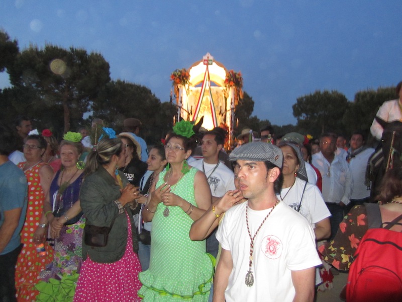 Cae la noche y nuestra amada Virgen sale al encuentro de todos sus fieles y ya entrando en el lunes nuestro Consiliario Gregorio Manso respirando la humedad de la marisma, por encima del resto de los hermanos y hermanas de nuestra Hermandad le grita y pronuncia lo que todos sentimos en nuestro interior. Y a ese sentimiento, estimada nuestra, añado que los poquitos que somos te queremos mucho, pensaremos mucho en TI y volveremos a encontrarnos CONTIGO si TU así lo quieres, la próxima Romería de Pentecostés de 2013. Para la que ya estamos trabajando.