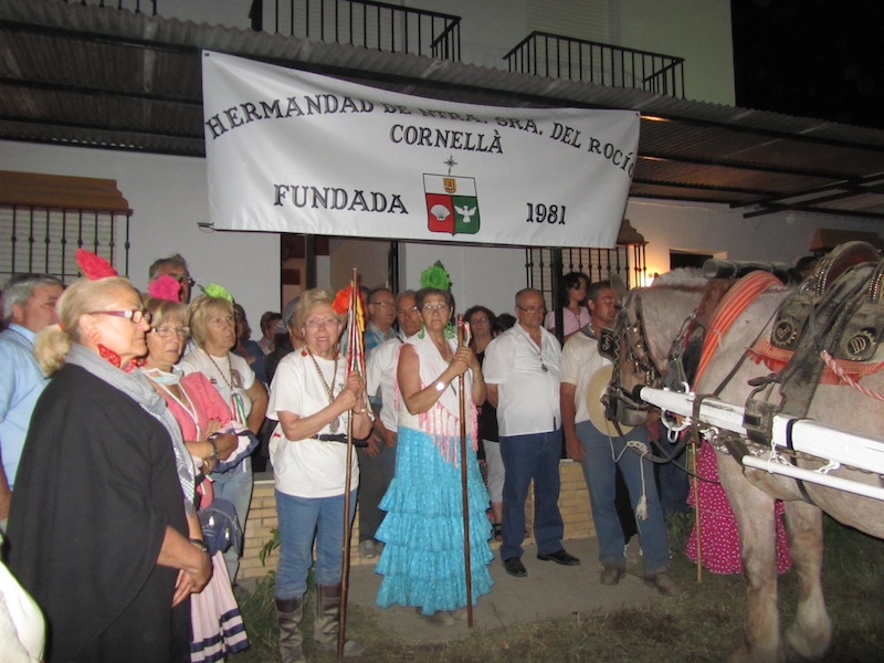 Se abrió el día y nuestro Simpecado nos protegía a todos des de su espacio en la zona de acceso a la casa. Este fue recibiendo durante la mañana del Sábado al igual que la del Domingo a nuestro Alcalde Antonio Balmón, al Alcalde de Sant Joan Despí Antonio Poveda, junto a la Tte. de Alcalde Belén y el Tte de Alcalde Alex Medrano, la Alcaldesa de Espulgues de Llobregat Pilar Díaz, el Cardenal Arzobispo de Barcelona Lluís Martínez Sistach y a la representante de la Policía catalana, la agente Jenifer Otero de la oficina de relaciones ciudadanas de proximidad de la comisaria de Cornella de Llobregat . Esta última acompañándonos des de la tarde del viernes y la que ha estado entre nosotros como una hermana más, gracias Jenifer por ser como eres. Sin lugar a dudas tienes espíritu rociero y así nos lo has demostrado.
