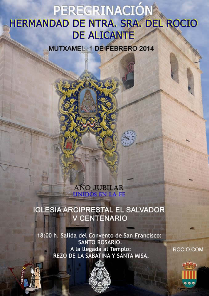 El próximo sábado 1 de Febrero, la Hermandad del Rocio de Alicante celebrará el Jubileo concedido por Benedicto XVI a la Parroquia de El Salvador de Mutxamel, coincidiendo además con las celebraciones de la Fiesta de la Luz Candelaria.