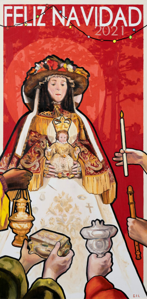 Gil, que tiene raíces almonteñas, ha subrayado la importancia de trabajar “no sólo con pintura, sino con sentimientos, devoción y el gran fervor que siento hacia la Virgen del Rocío”. Su obra conjuga el tratamiento naturalista con que están trabajadas las Sagradas Imágenes y las manos, sumado a la cuidada composición que nos hacen partícipe de la escena que observamos, sintiéndonos parte de los pastores que fueron a adorar al Mesías, nacido en Belén.