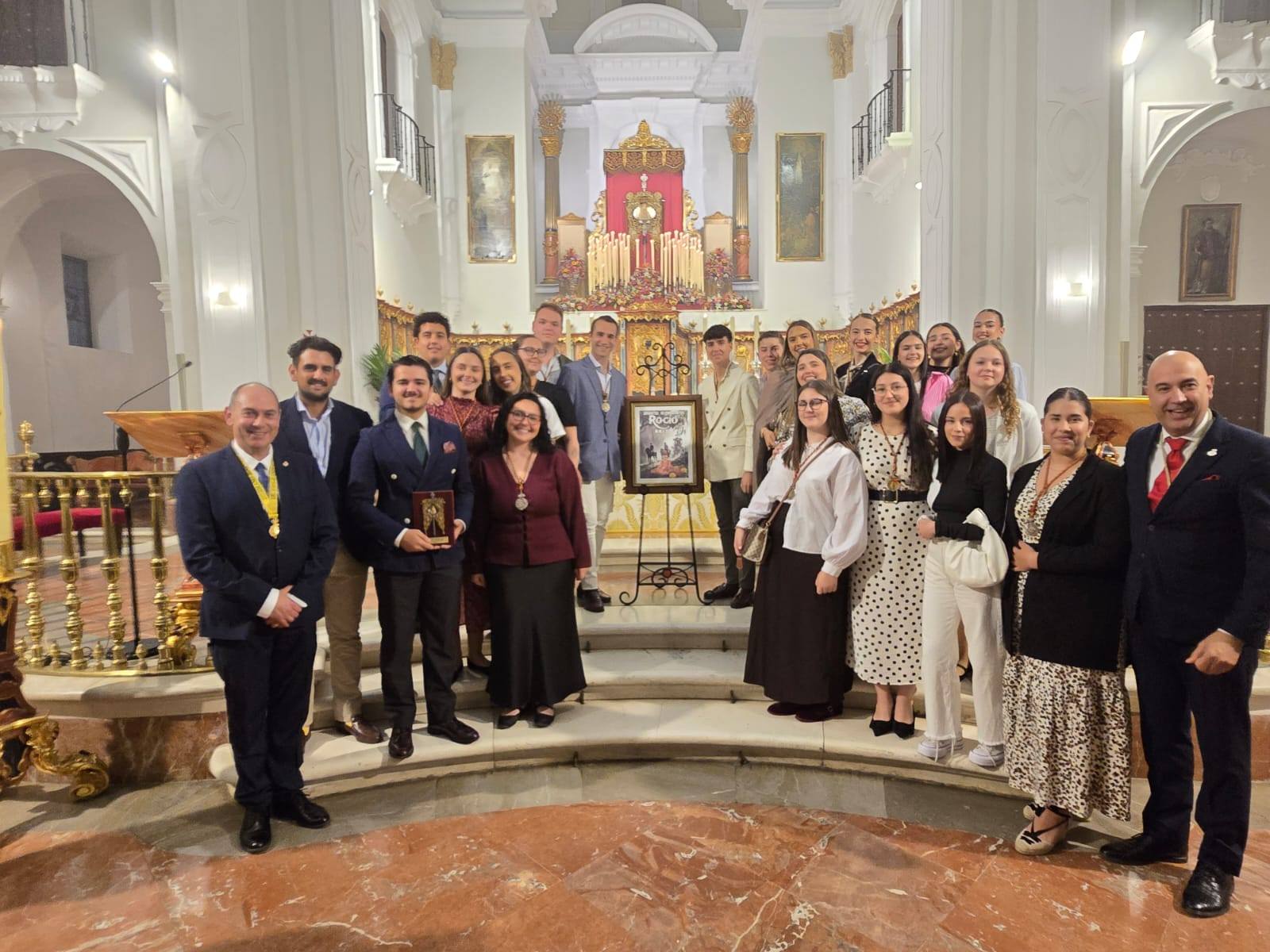 La noche reservaba además una sorpresa significativa: la presentación del cartel joven de la Romería del Rocío 2026, obra del joven artista Alonso Sánchez Martín. La obra fue introducida por Ángela Sierra, quien destacó que “hablar de Alonso es hablar de talento, de compromiso y de una profunda raíz rociera y cofrade”.