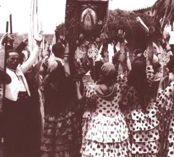 Vino a Almonte y refirió todo lo sucedido con la cual noticia salieron el clero y cabildo de esta villa y hallaron la santa imagen en el lugar y modo que el hombre les había referido, notando ilesa su belleza, no obstante el largo tiempo que había estado expuesta a la inclemencia de los tiempos, lluvias, rayos de sol y tempestades.