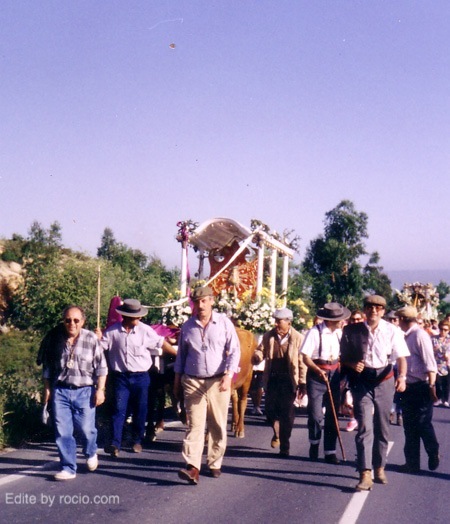 En la foto: En el centro, acompañando al Simpecado de Ronda, Miguel Palma en el primer camino como Hdad. Filial, al fondo, la carreta de La Palma