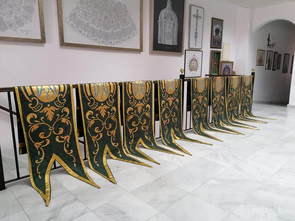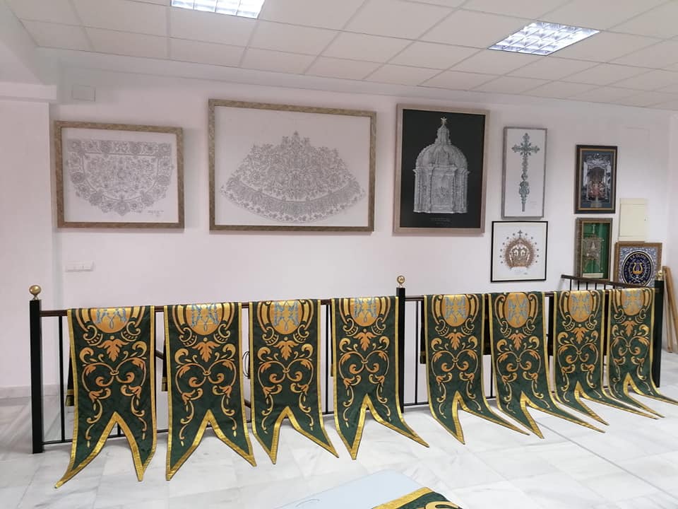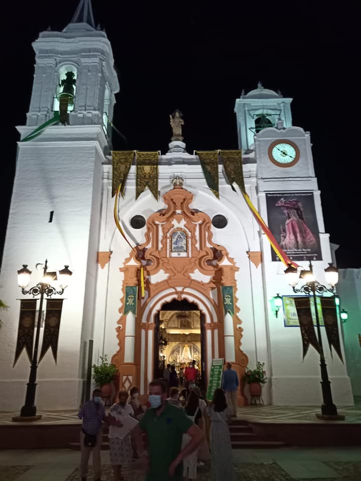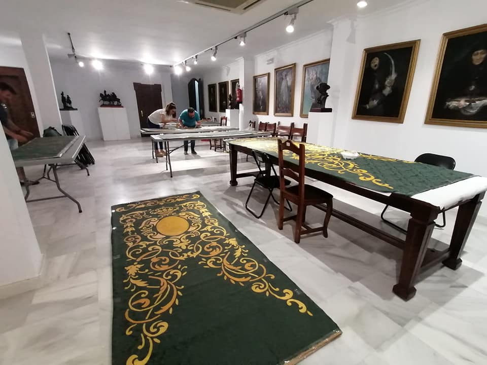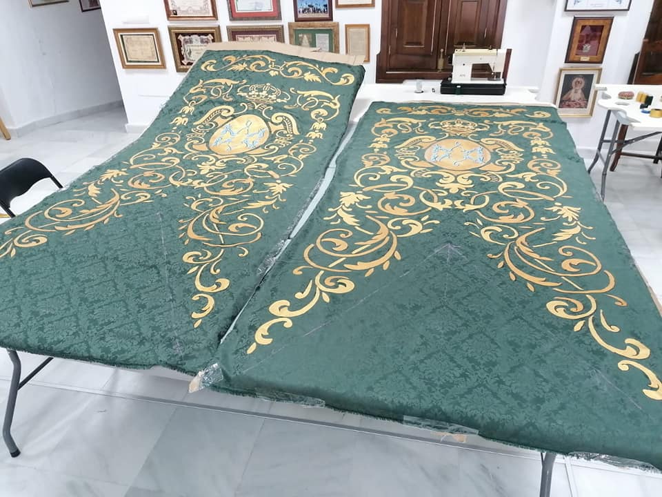 Desde anoche lucen en la fachada de nuestra Parroquia, en la víspera de la Asunción de la Virgen, estos magníficos reposteros de fabricación casera, pintados a mano bajo la dirección de José María Carrasco, que han sido realizados por colaboradores de las delegaciones de Juventud, de Cultos y del Taller de Bordados, durante los pasados meses. Un trabajo artesanal realmente espectacular, digno de elogio. Mi agradecimiento a todos los que han puesto sus manos en ellos para hacer más grande la celebración de este Rocío Chico y para engrosar los ornamentos de culto de la Matriz.