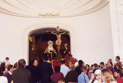 Tras casi una hora desde que salió, la comitiva llega a la puerta de la Ermita y sobre su blancura inmaculada, salpicada sólo por lo nidos, se recorta la Cruz. Jesús ha muerto.
