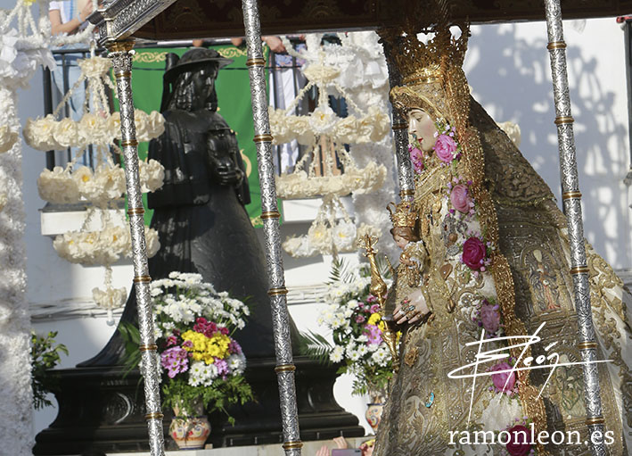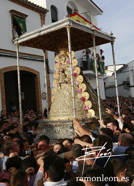 A las 7,24 de la mañana la Virgen del Rocío ha salido en procesión a hombros de sus hijos almonteños.