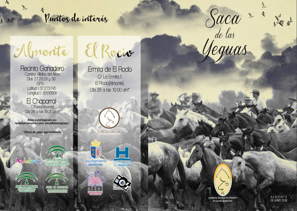 La Saca está organizada por la Asociación Andaluza de Criadores de Ganado Marismeño, que controla el número de animales, la raza, … El Comité de Razas de Ganado de España concedió hace un año la denominación de raza autóctona al ganado equino marismeño. Nos comentaba un ganadero una de las características, de las muchas que tiene, de esta raza en cuanto a sus pezuñas, es que son de un tamaño más grande de lo normal, debido al lugar de permanencia de estos equinos durante todo el año: las marismas de Doñana, que hacen que estos animales pasten la mayoría de las veces sobre dos patas, ya que se hundirían sin remedio al hacerlo sobre las cuatro, así de esta forma cuando van hundiendo dos de ellas, las levantan y se apoyan sobre las otras dos. Esto ha hecho que desarrollen unas pezuñas con base más grande.