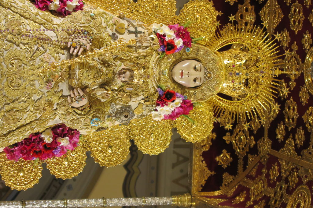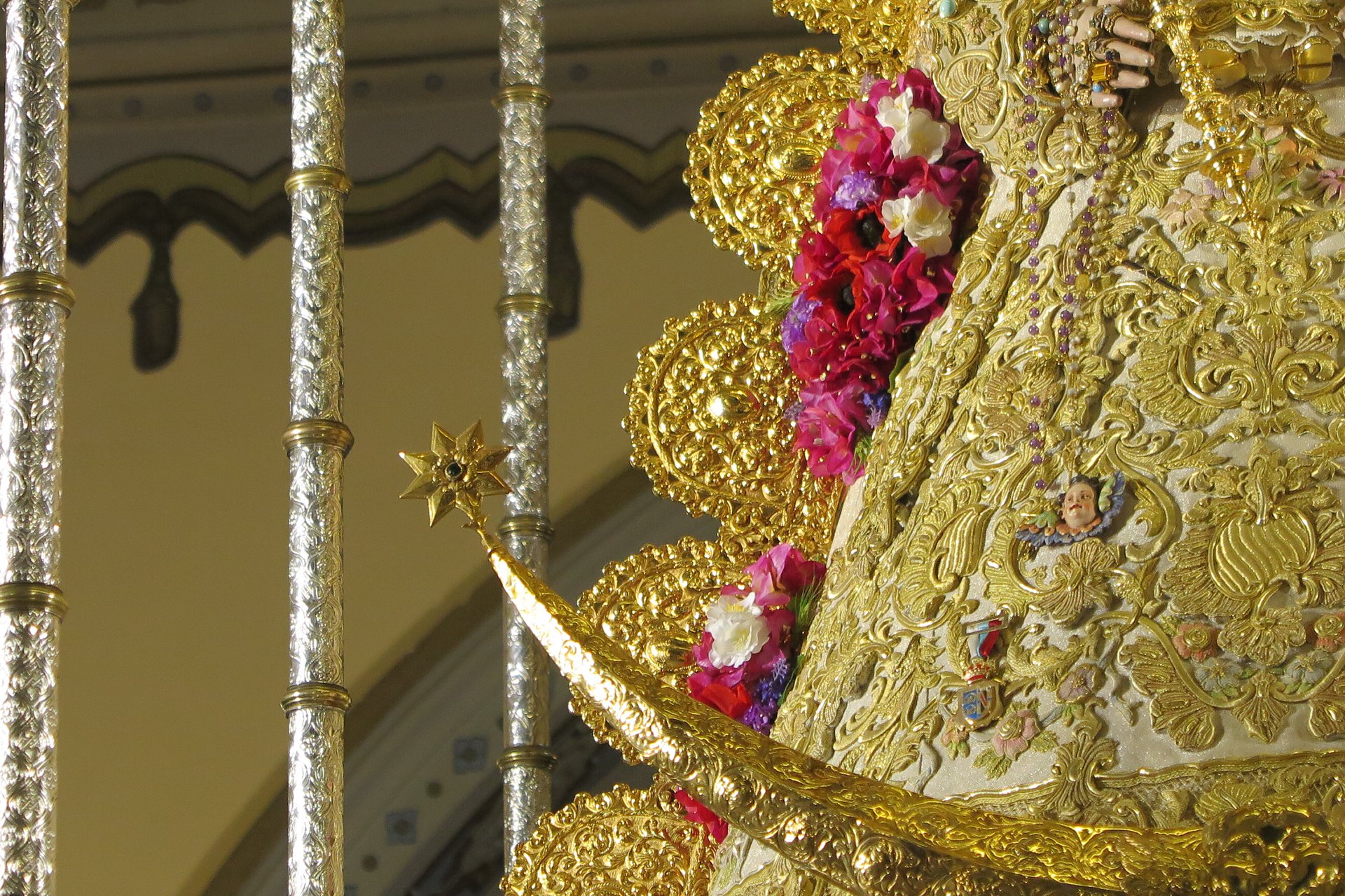 La Virgen del Rocío amanece entronizada en su paso y vestida con el traje de Pentecostés para celebrar un nuevo Rocío desde la Parroquia de Nuestra Señora de la Asunción, de Almonte. La Hermandad Matriz inicia su Novena el próximo 14 de mayo, unos cultos que, a diferencia del año pasado, se celebrarán a puertas abiertas.