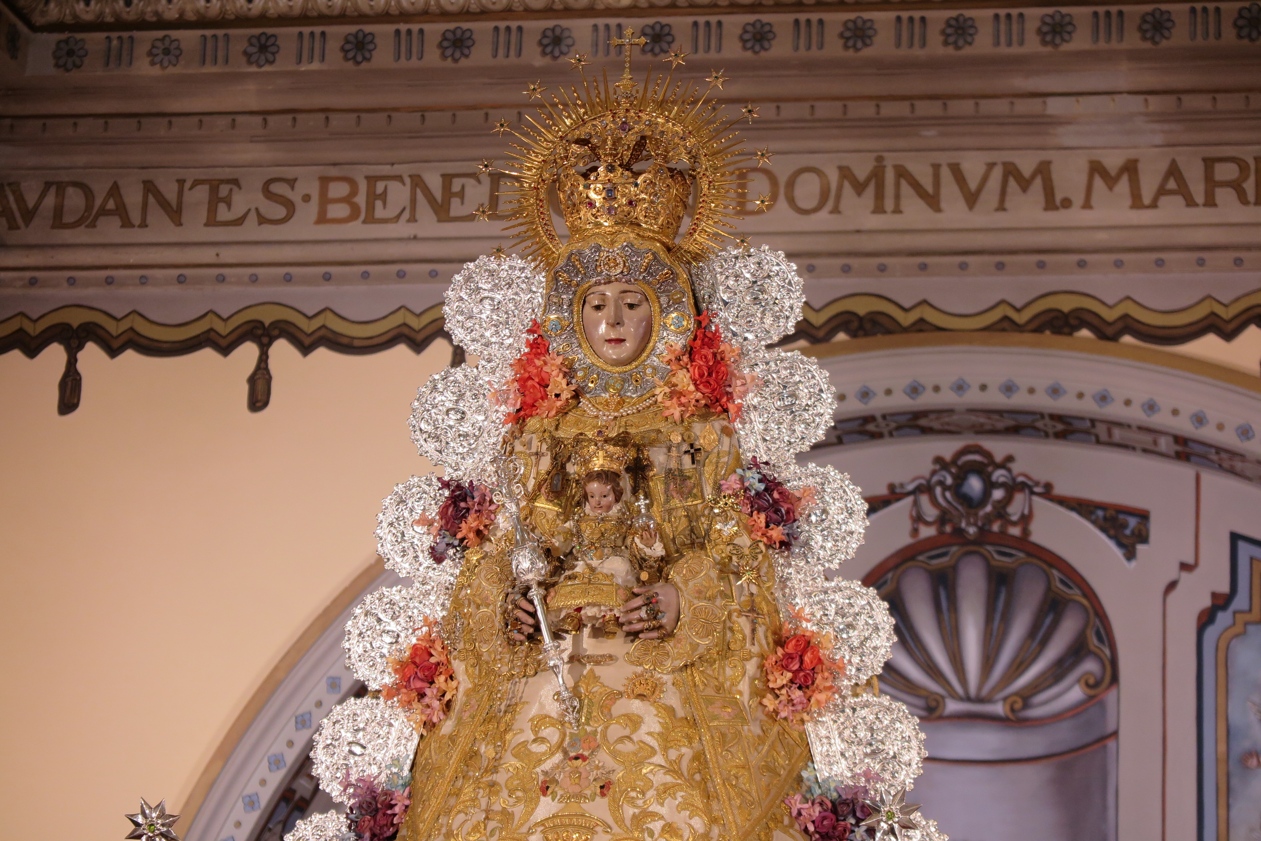 La Virgen del Rocío ha amanecido hoy vestida con sus galas de Reina, cuando se cumple poco más de un mes desde su estancia en la Parroquia de Nuestra Señora de la Asunción, en Almonte. Un hecho que acontece cada siete años.