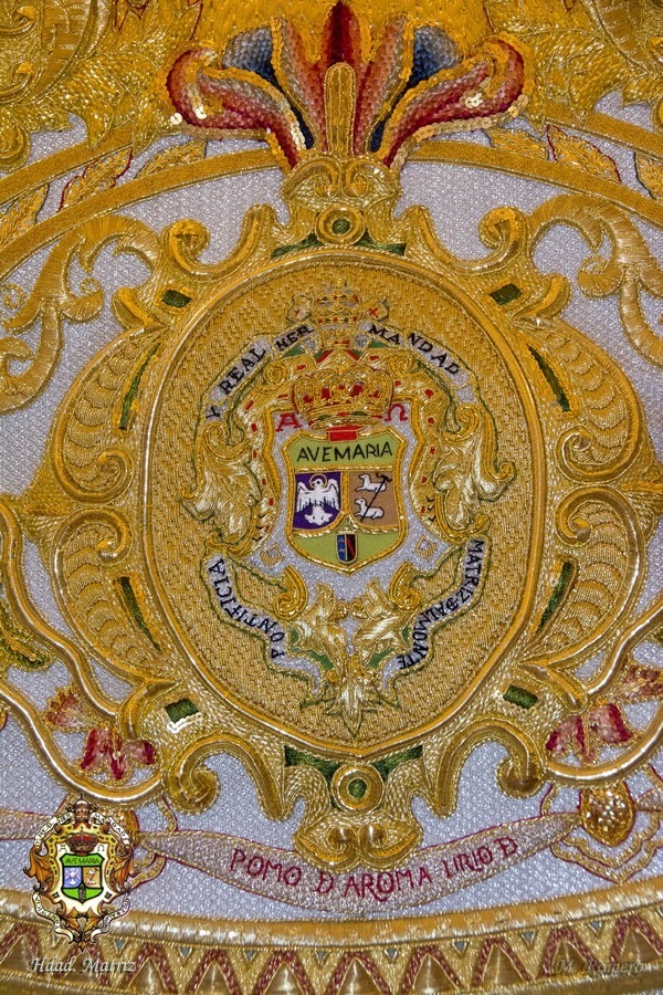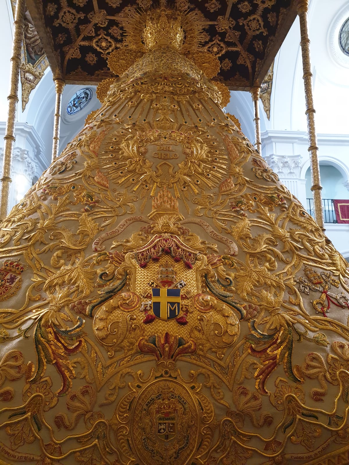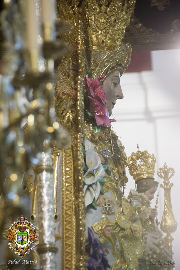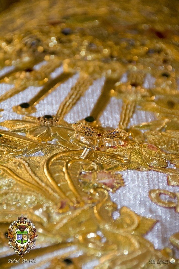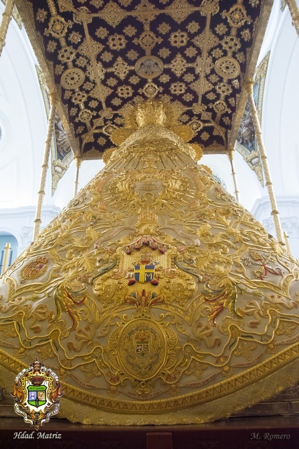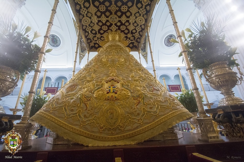 En la pasada noche, las hermanas camaristas, procedieron a entronizar en su paso procesional a la Santísima Virgen del Rocío, que en esta Romería luce un nuevo traje completo, realizado en el taller de bordados del jerezano Fernando Calderón. El Pastorcito viste a juego.