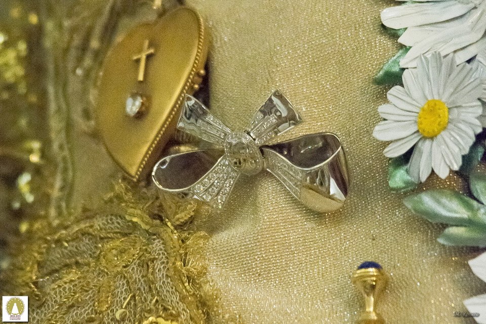 Hace ya 15 años que el Foro del Rocio.com, (siguiendo la iniciativa de su miembro, Santiago Manuel Díaz Toledano), le regaló a la Señora un lazo blanco de platino y brillantes, símbolo de la unión entre todos los participantes de este foro. Esta iniciativa partió de Jaén. Replica del que lucia el Santo Rostro de Jaén antes de la guerra civil española. Fue un regalo de la marquesa de Blanco Hermoso que había lucido en su boda. La réplica de este lazo es la que hoy luce Ntra. Sra.