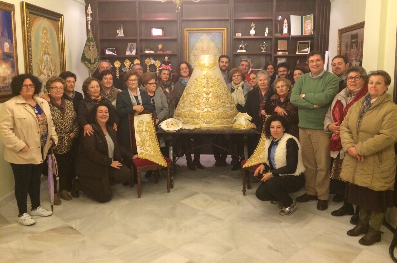 La Junta de Gobierno y las hermanas Camaristas, al elegir este traje para vestir a la Virgen esta Romería, han querido reconocer de esta forma el esfuerzo y el cariño que nuestras hermanas han puesto en la confección de este traje, y ofrecer este homenaje a las mujeres de Almonte, que han sabido transmitir la devoción por nuestra Madre, la Virgen del Rocío en el pueblo, a sus hijos y a sus nietos.