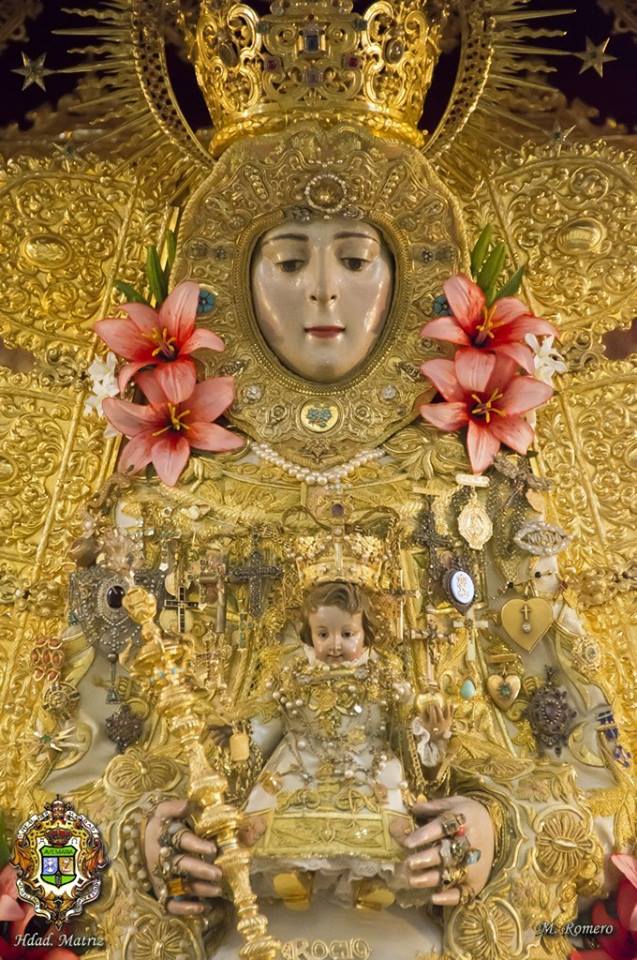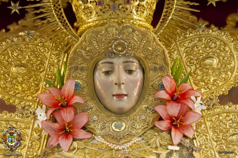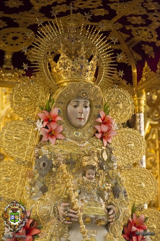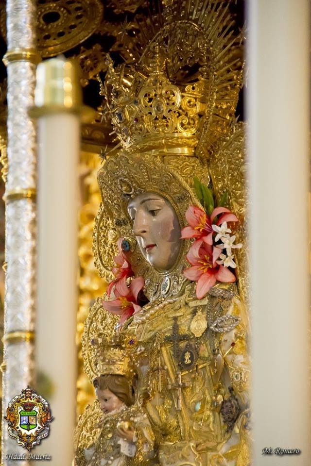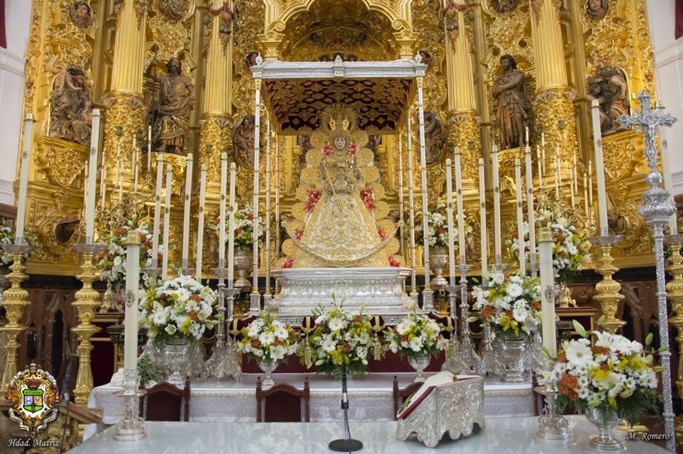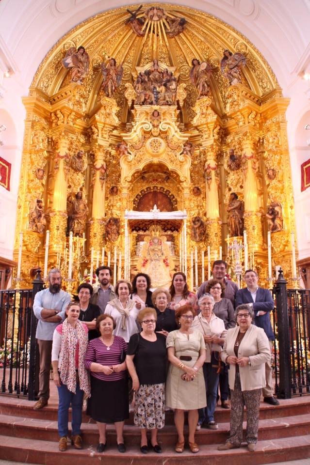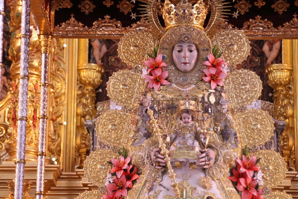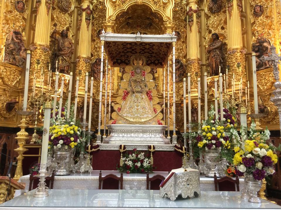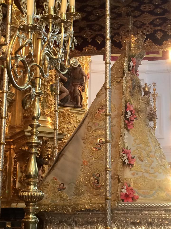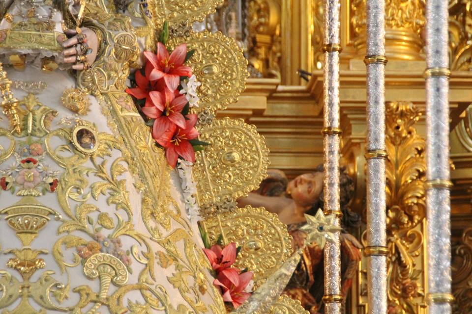 En la noche del domingo al lunes 4 de mayo, la Stma. Virgen del Rocío ha sido vestida por las hermanas camaristas para la próxima Romería y entronizada en su paso.