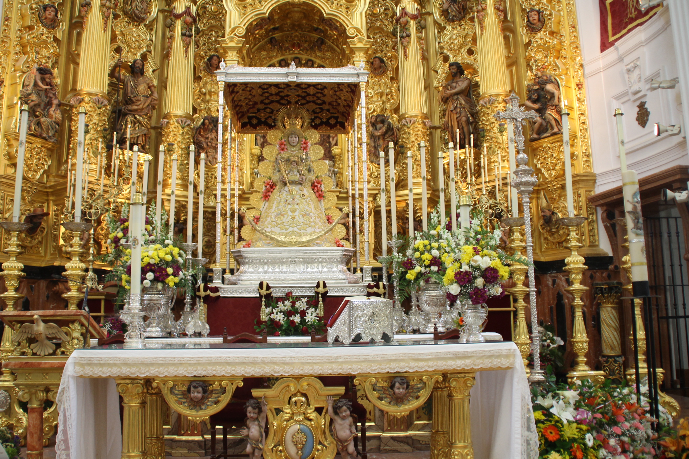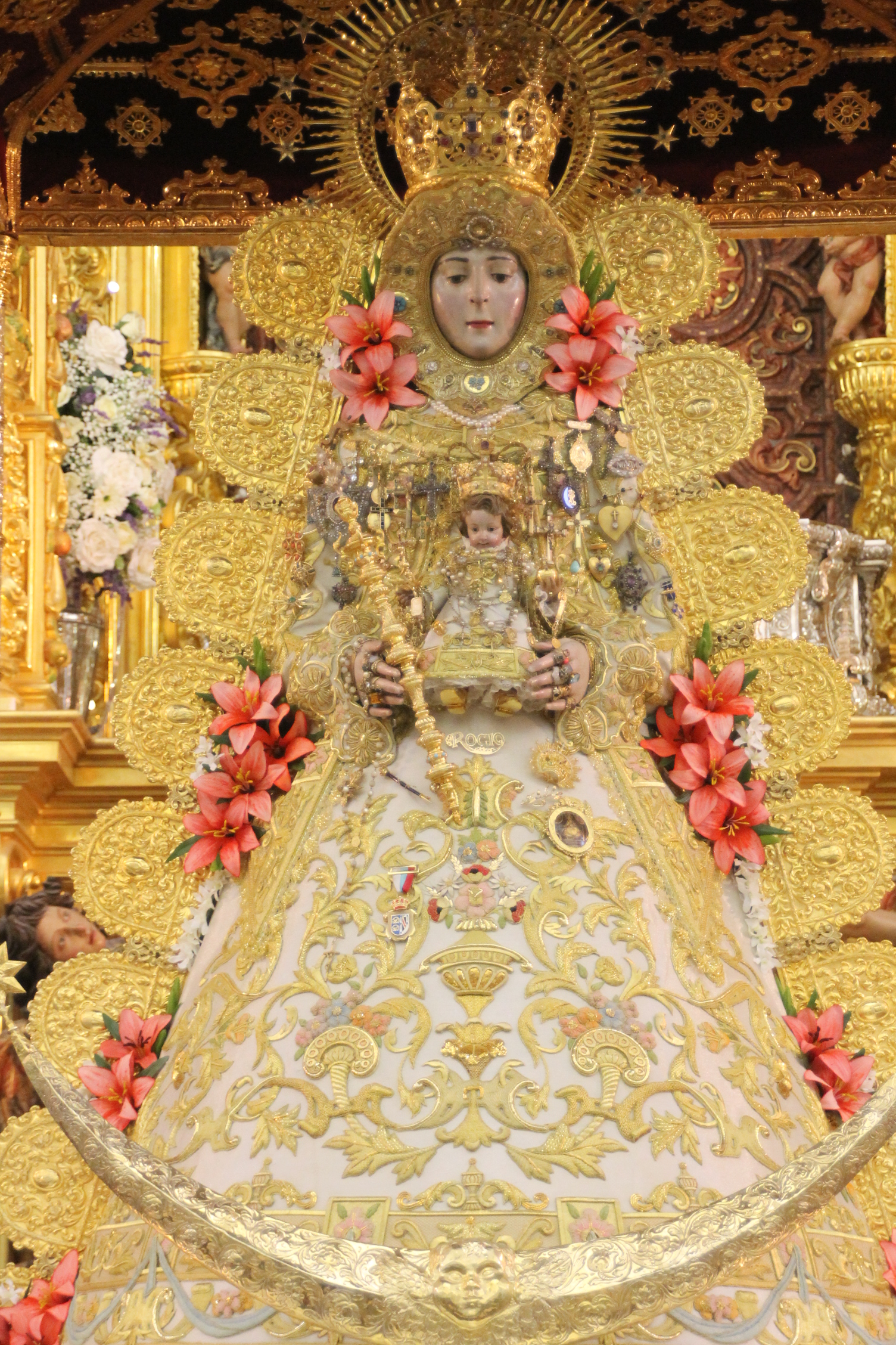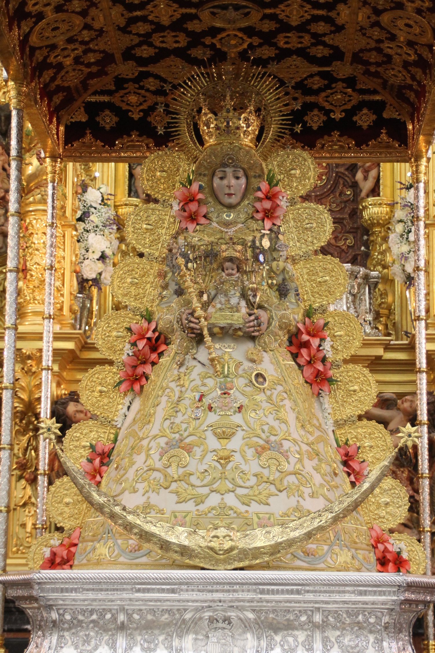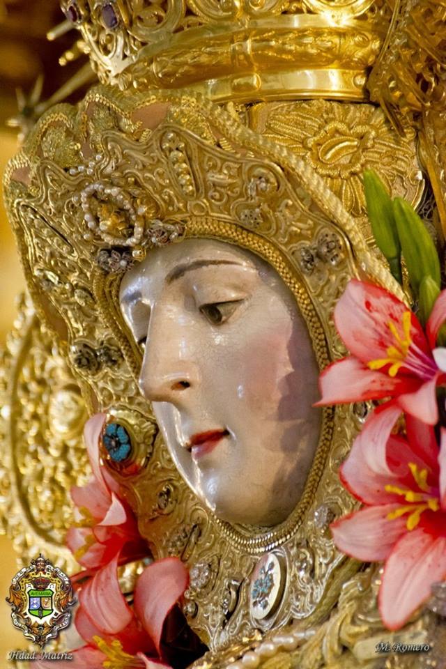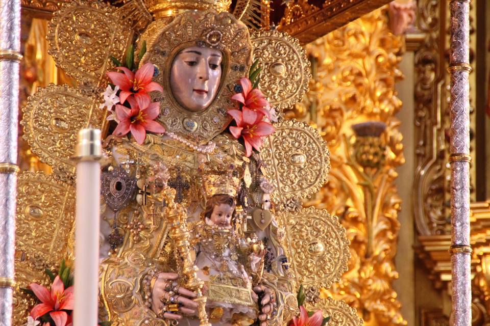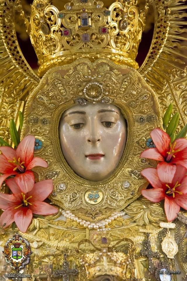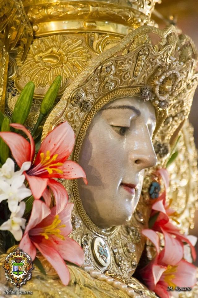 En la noche del domingo al lunes 4 de mayo, la Stma. Virgen del Rocío ha sido vestida por las hermanas camaristas para la próxima Romería y entronizada en su paso.