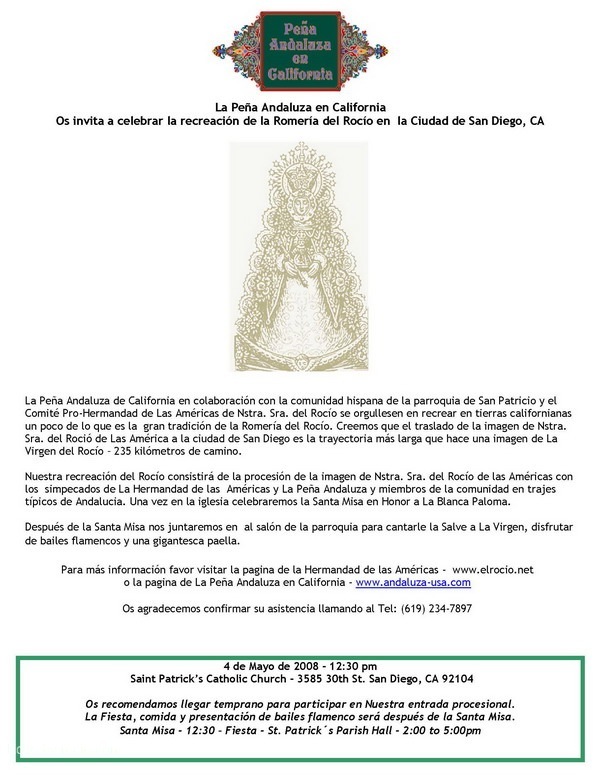 La Virgen del Rocio Viaja de Los Angeles a San Diego – El Rocio en San Diego California