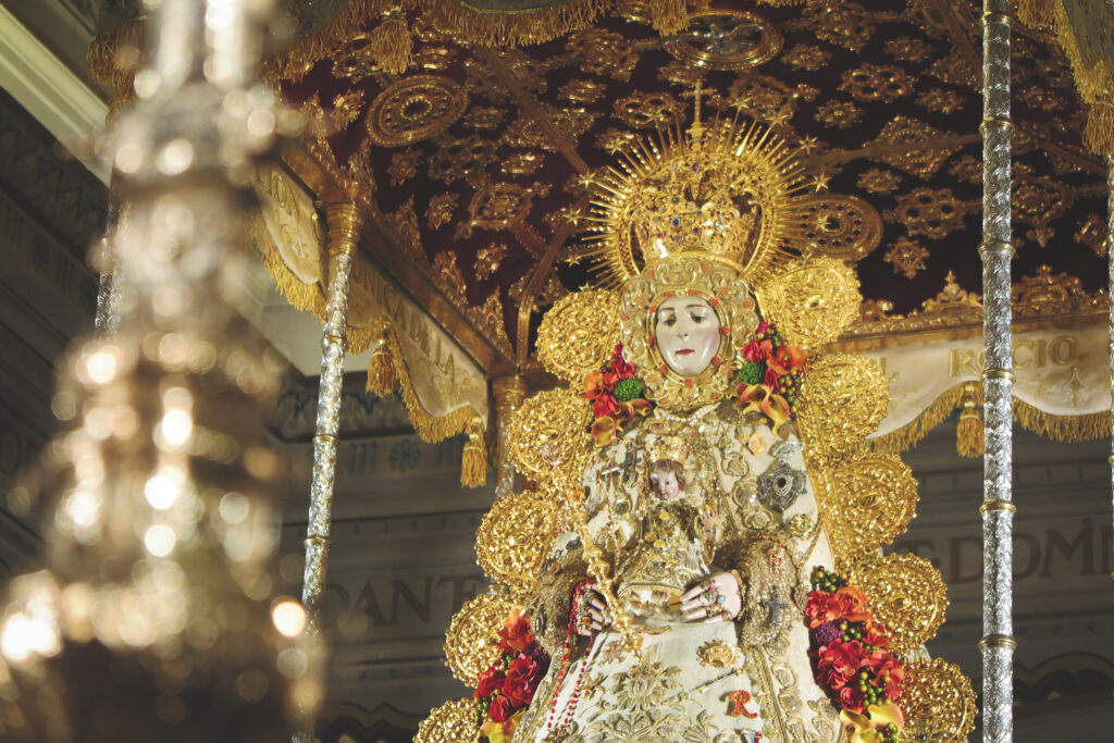 El próximo lunes, la Hermandad Matriz inicia los cultos del Rocío Chico. Lo harán, por segundo año consecutivo desde la Parroquia de Ntra. Sra. de la Asunción. Para la ocasión, la Virgen del Rocío viste desde hoy el traje de los Montpensier, donado por la condesa de París, S.A.R. Isabel Francisca de Orleans y Borbón.