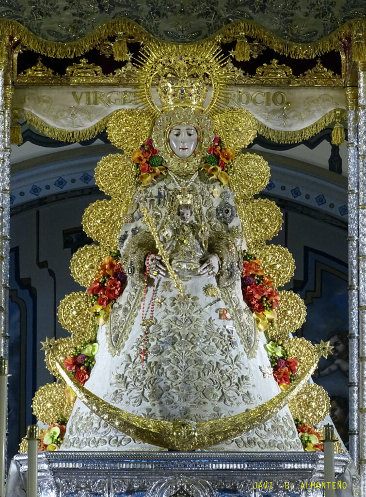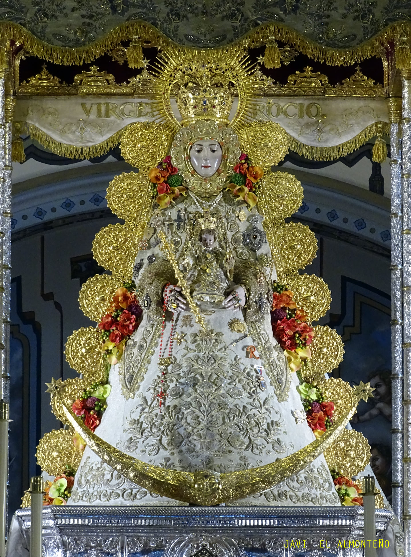 El paso de la Virgen luce en Almonte, por primera vez en los últimos cien años, las bambalinas que recuperase la Sagrada Imagen para la procesión extraordinaria de septiembre de 2018, confeccionadas en el taller de bordados de Fernando Calderón en Jerez de la Frontera, con motivo del Centenario de su coronación canónica. Estrena, además, un rosario de corales y plata, bañado en oro; a juego con el rostrillo de corales. Y un nuevo broche, en forma de mariposa, en plata sobredorado y oro. Diseñado por Álvaro Abril, donado por una devota