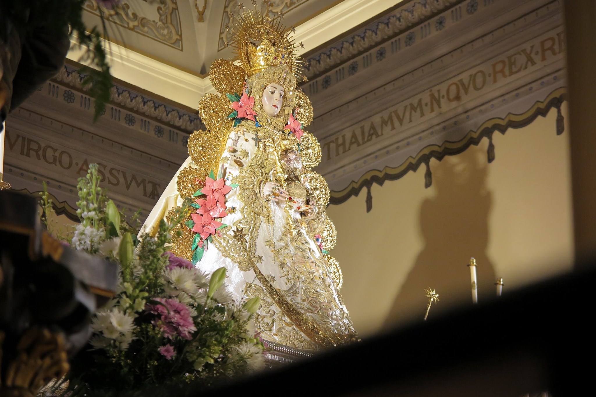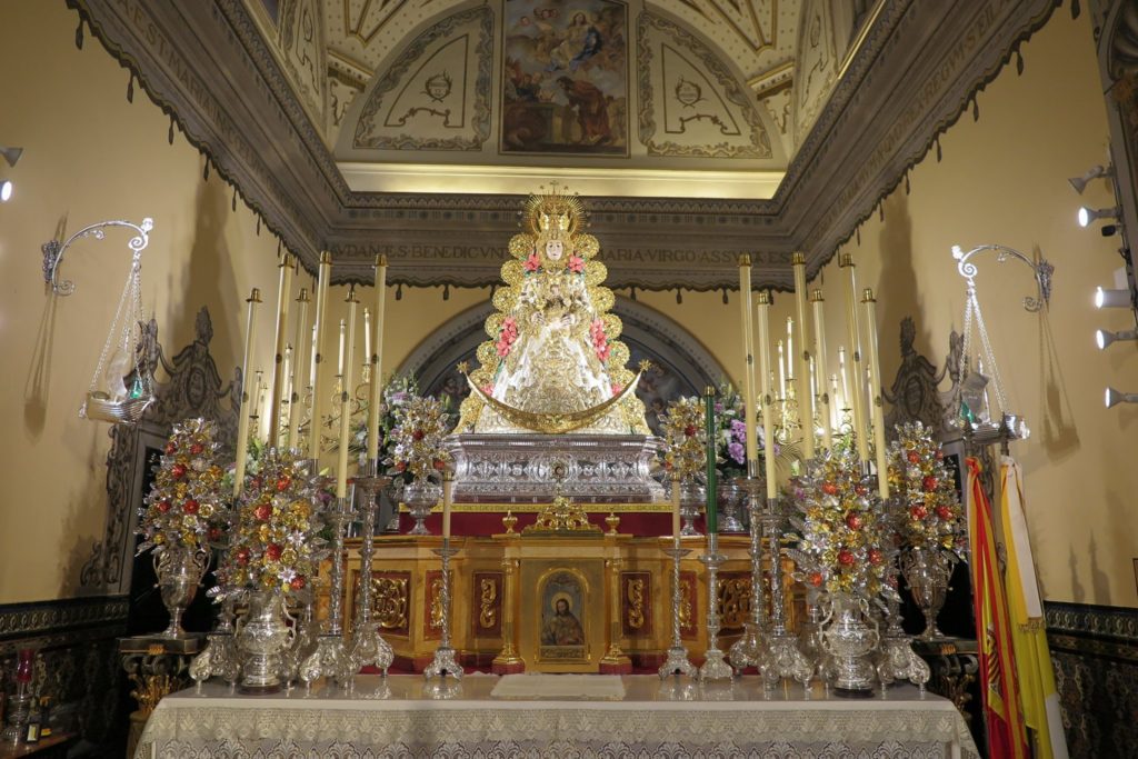 En cuanto al exorno floral, las flores de la Virgen son de talco, combinadas con flores secas. En este apartado, destacar las jarras que engalanan el altar, realizadas artesanalmente y donadas por Mercedes Díaz Sánchez y la familia Díaz Periánez.