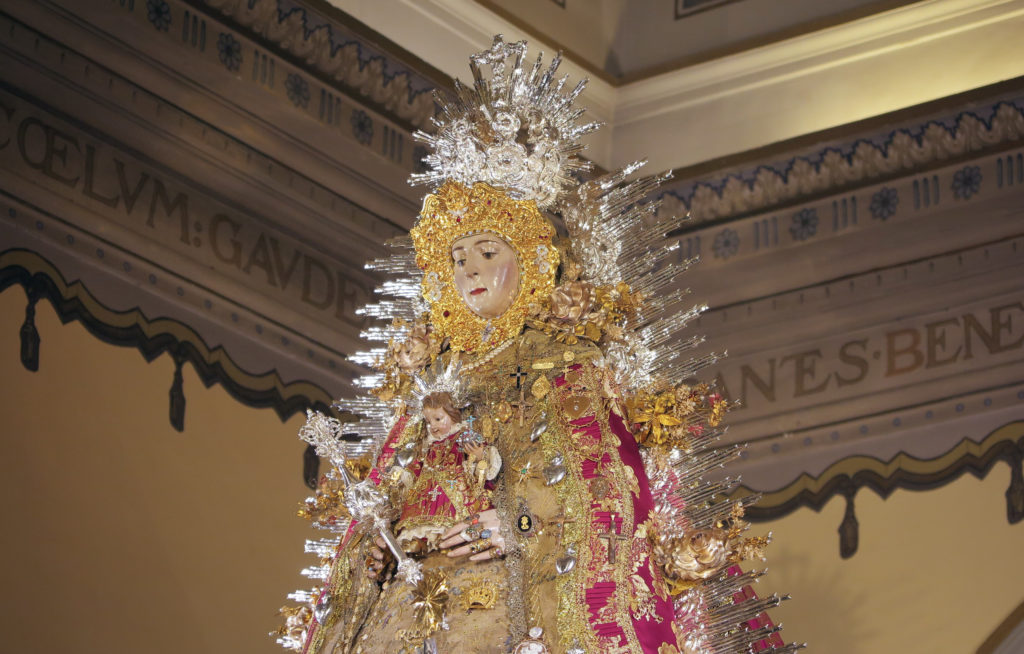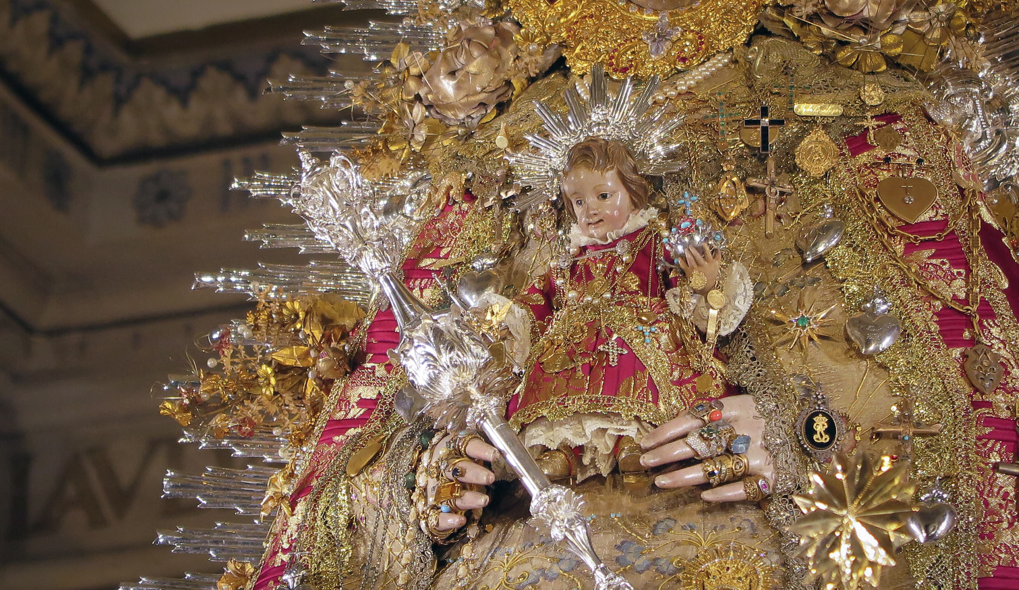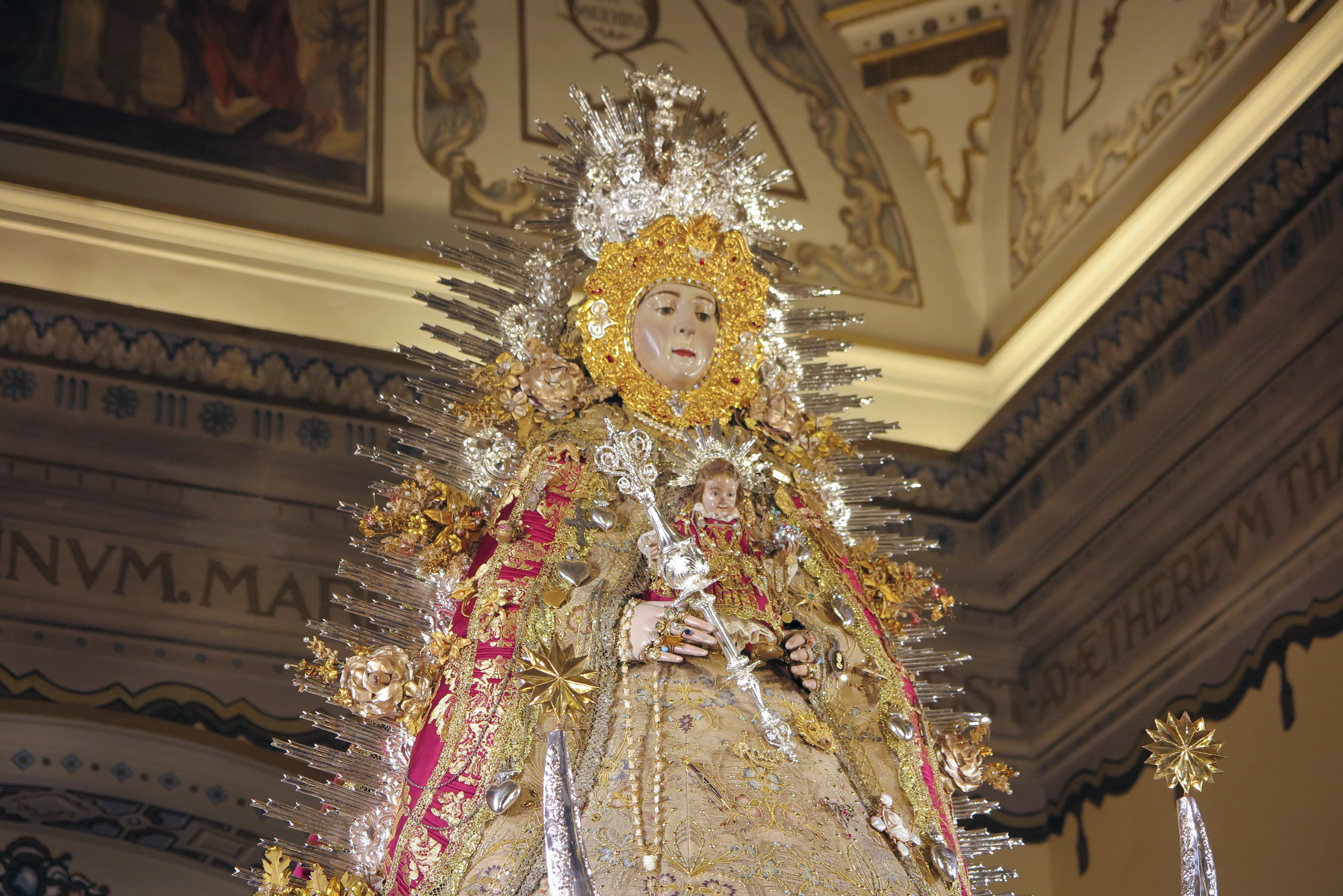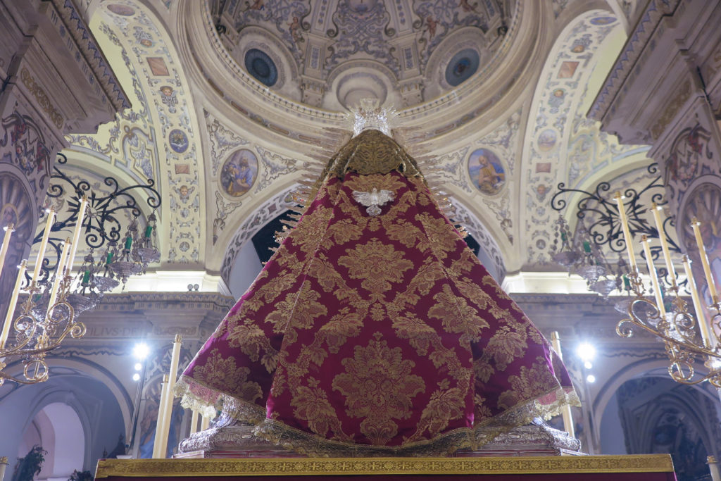El Pastorcito recupera el rojo litúrgico para celebrar su Natividad. La Virgen estrena rostrillo de estilo barroco, donado por una familia sanluqueña.