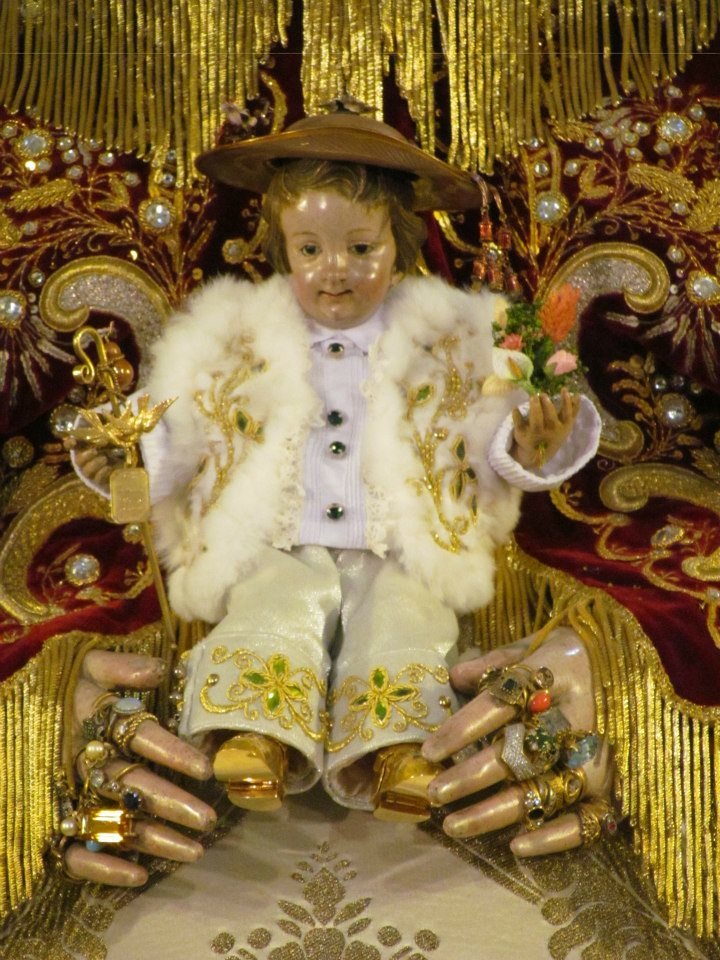 El traje del Pastorcito, donación de unos devotos de Sanlúcar, consta de pantalón confeccionado en tisú de plata, camisa y chalequillo de piel de conejo en color blanco, con bordados en oro y espejuelos, recordando el típico traje corto. El sombrero del Niño y el báculo, fue regalo del Grupo Joven dela Hermandad Matriz, y lo estrenó la Virgen en su anterior traslado en el año 2005.