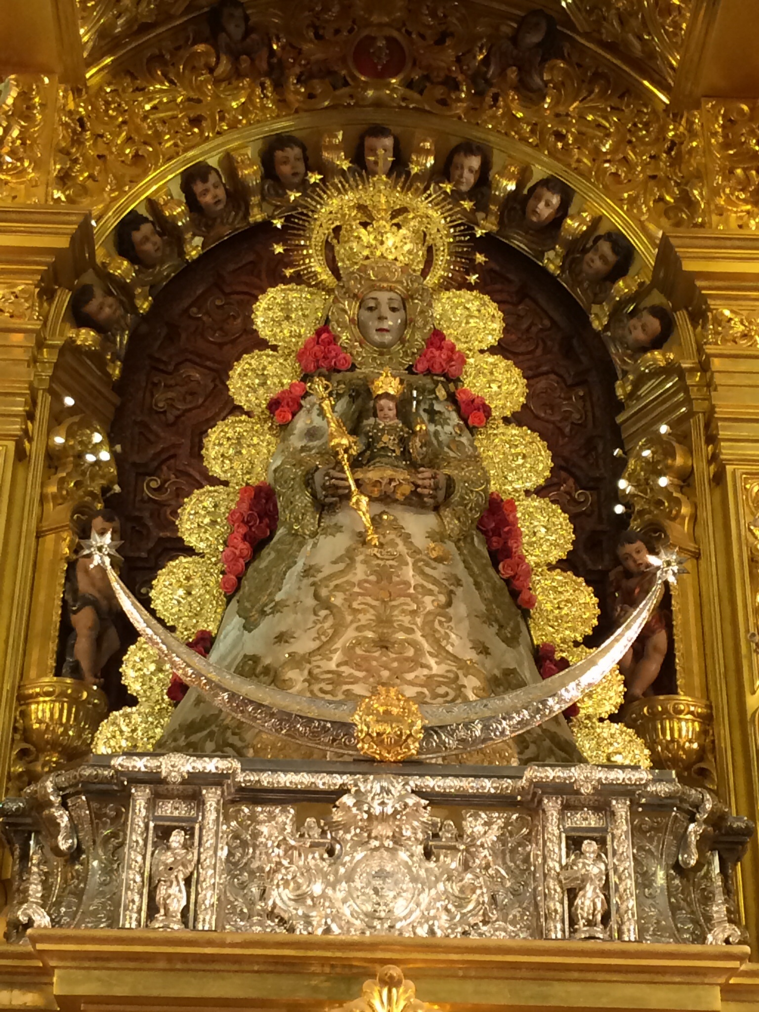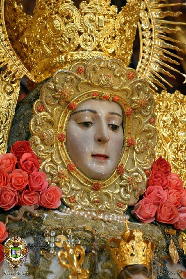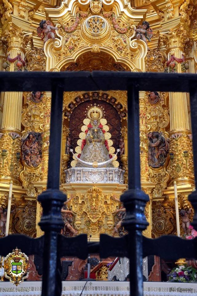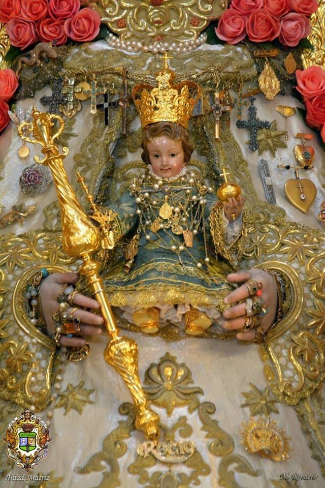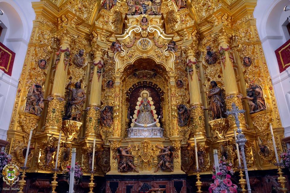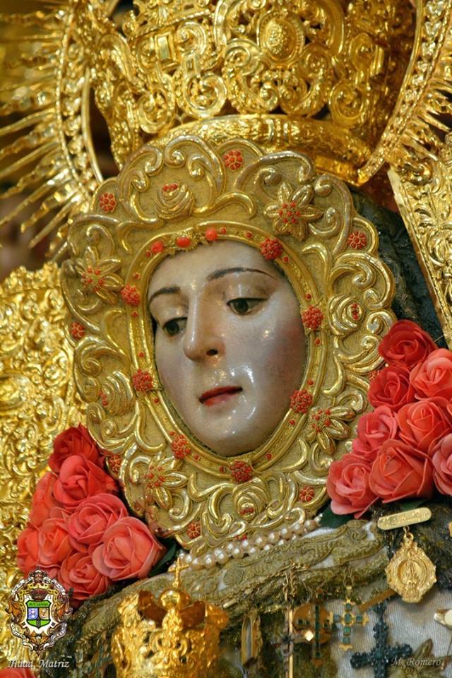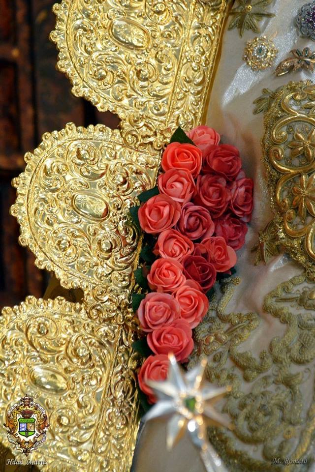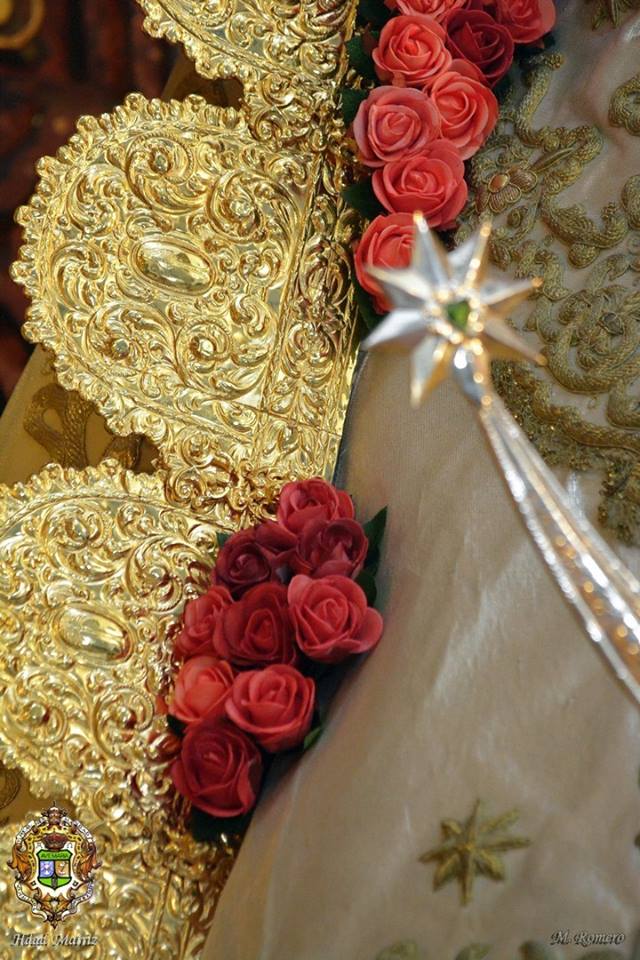 En la pasada madrugada, las hermanas camaristas, procedieron a vestir la Imagen de la Stma. Virgen, que luce el traje denominado como del “Tío Carlos”, en alusión al donante, que fue realizado por los hermanos Benítez, a finales de los 80. El manto fue realizado por las hermanas Ramas en el año 2006, por encargo de la Hdad. Matriz. En esta ocasión luce ramilletes de rosas en colores corales, a juego con el Rostrillo.