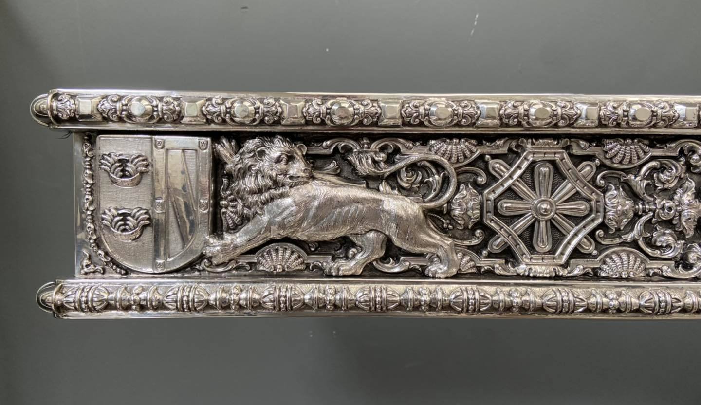 Quizás el elemento menos interesante de las andas actuales sea el moldurón que recubre las propias andas, en el que apenas sobresalen como elementos de interés las cuatro cabezas de león que se sitúan en sus esquinas.