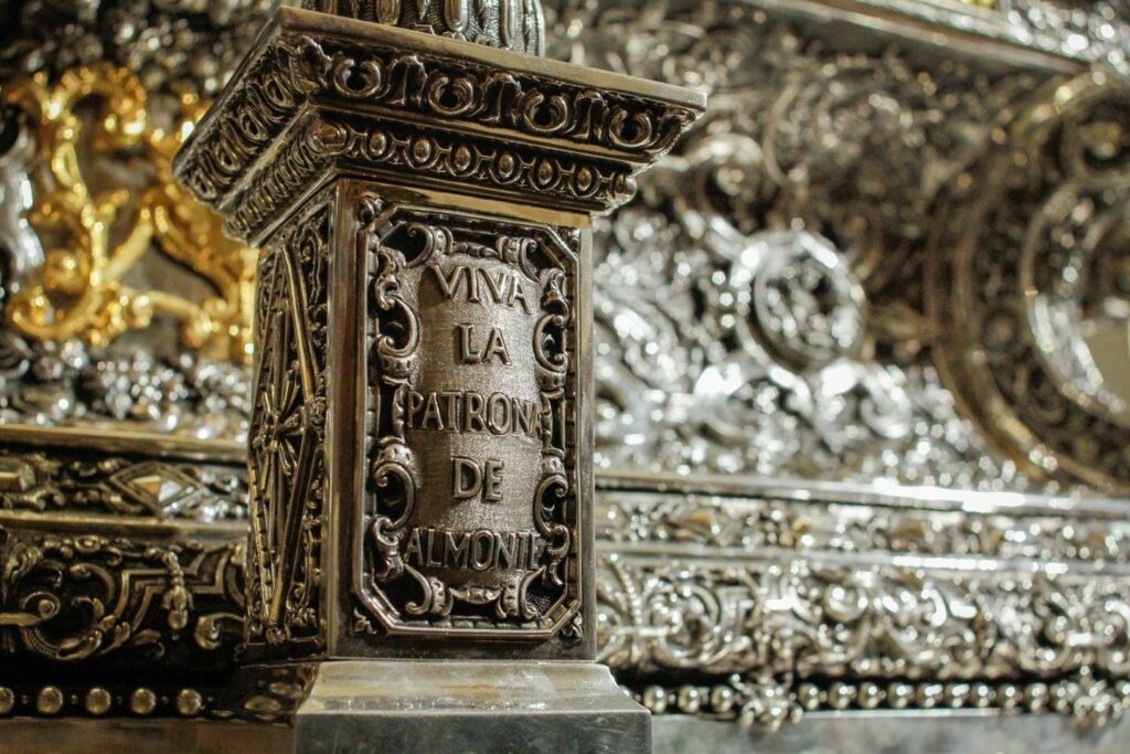 que simulan sustentar el peso de la Sagrada Imagen. Para ampliar y enriquecer la iconografía de la peana se ha contado con la participación del almonteño Manuel Galán, doctor en Historia del Arte y director del Museo-Tesoro de la Hermandad Matriz.