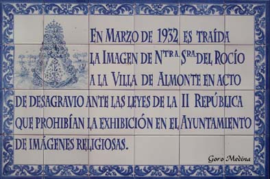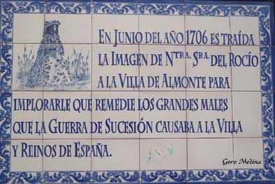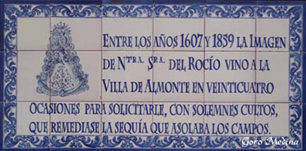 Después del último traslado de hace siete años, se instalaron a través del camino de la Virgen que lleva desde la entrada el pueblo hasta la Iglesia, diferentes azulejos conmemorativos de los diferentes traslados de nuestra Santísima Madre a su pueblo.