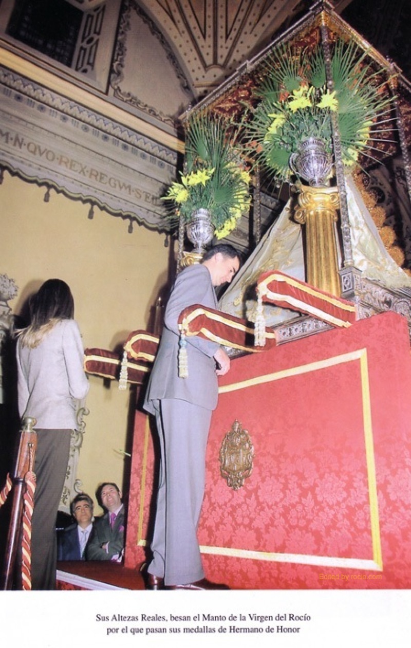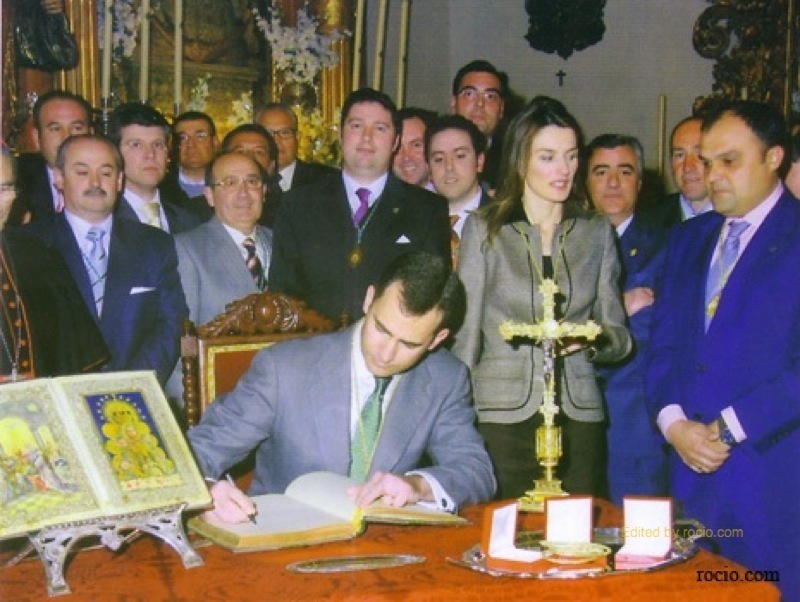 Asimismo, según explicó a Europa Press el presidente de la Hermandad Matriz, don Felipe y doña Letizia han plasmado su firma en el libro de honor de la hermandad y han recibido tres medallas de la Matriz de Almonte, una de ellas para la recién nacida Leonor.