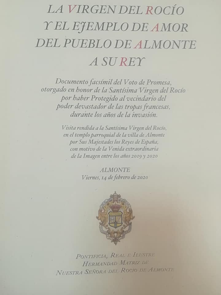 El viernes, 14 de febrero, SSMM los Reyes de España, visitan a la Virgen del Rocío en la Parroquia de Ntra. Sra. de la Asunción de Almonte. El presidente de la Hermandad Matriz, Santiago Padilla, los invitaba el pasado mes de diciembre a participar en algún momento del año 2020, en la conmemoración del Centenario de la concesión del título de Real a esta hermandad por S.M. el Rey Alfonso XIII en el año 1920, después de la Coronación Canónica de la Virgen del Rocío.