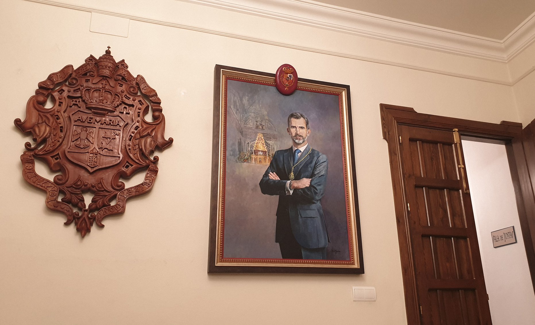 Un legado de este Centenario del título de Real ha sido, además de la visita de SS.MM.RR. a la parroquia de Almonte, el espléndido retrato del Rey D. Felipe VI, realizado por Nuria Barrera, rematado en la parte superior del marco con su escudo Real, en madera policromada, labrado en el taller de los Hnos. Caballero, que preside la Sala de Juntas de la Matriz. Santiago Padilla