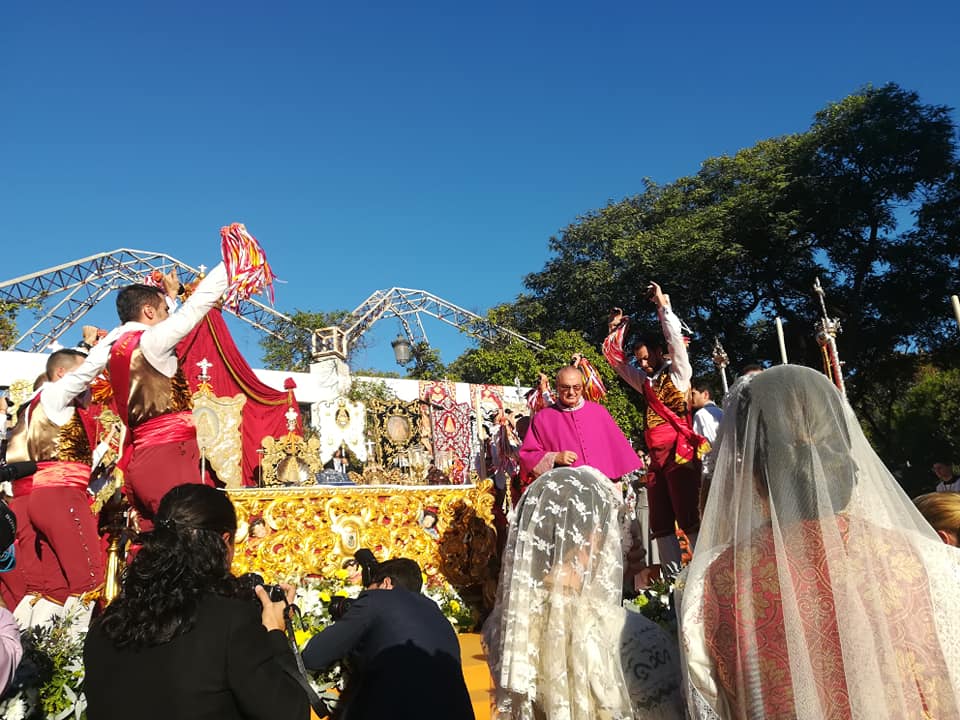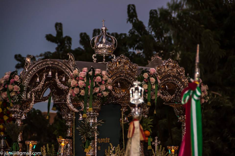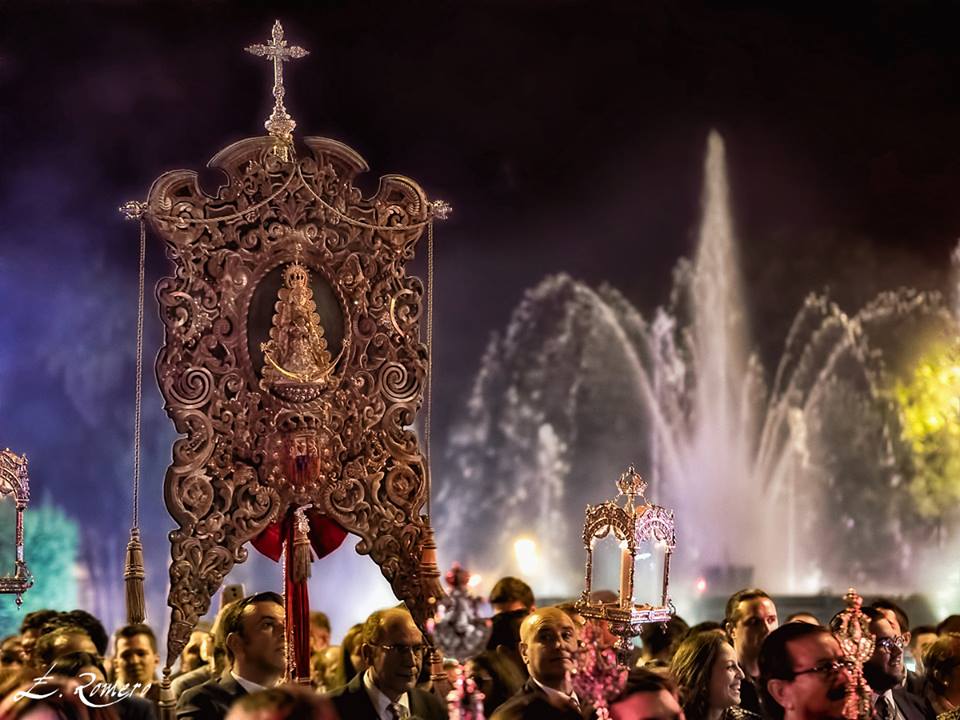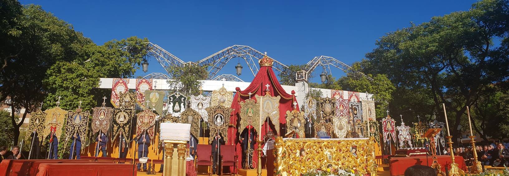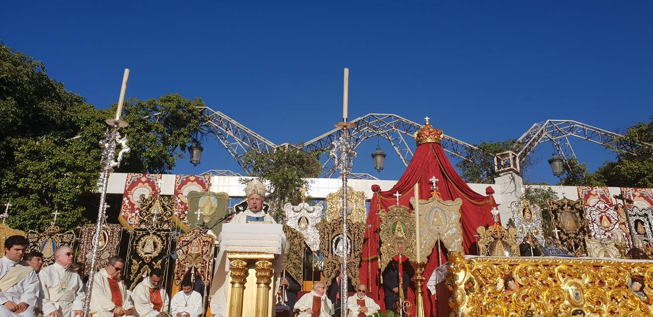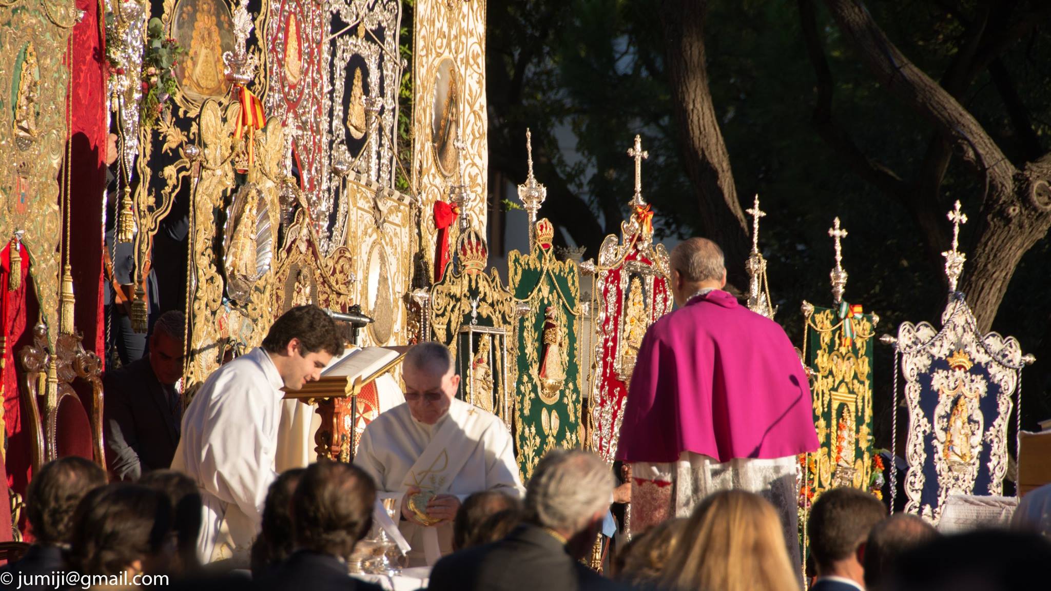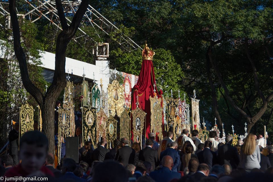 Rezo del Santo Rosario en el monumento a la Virgen del Rocio. #MagnaRociera