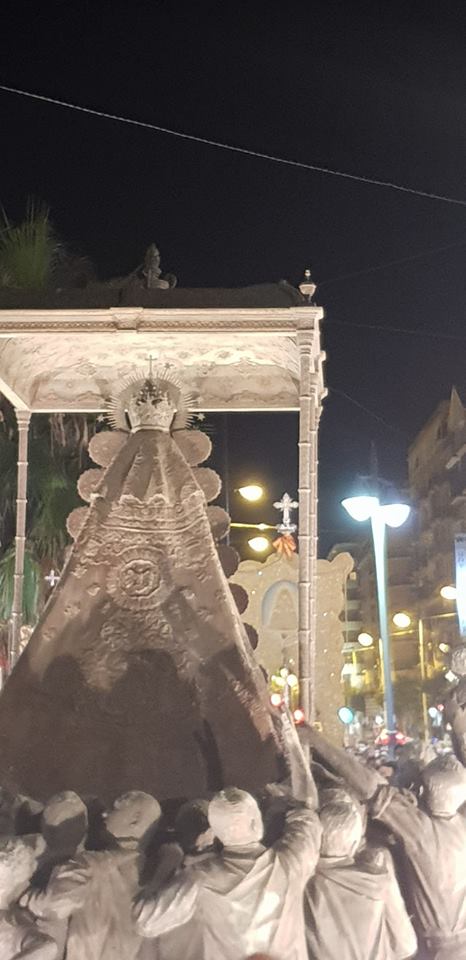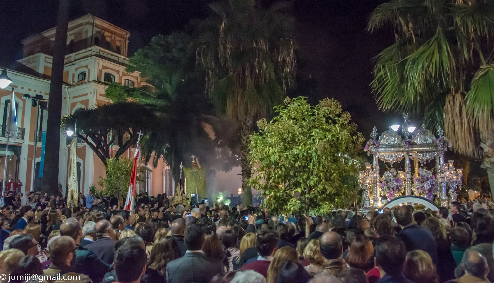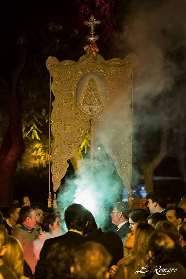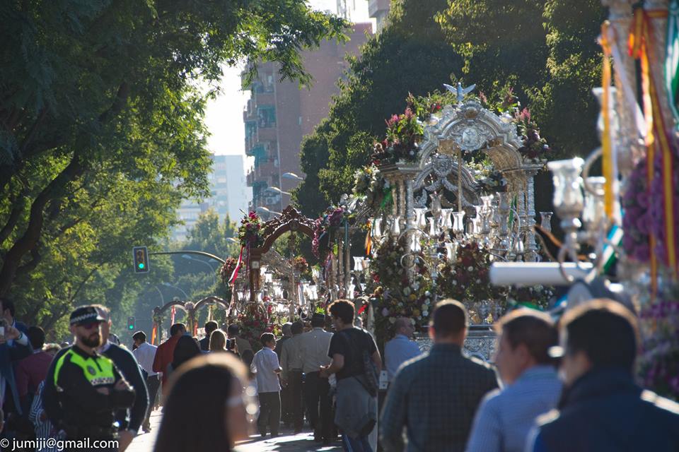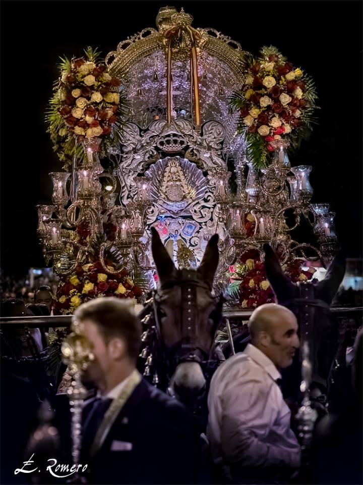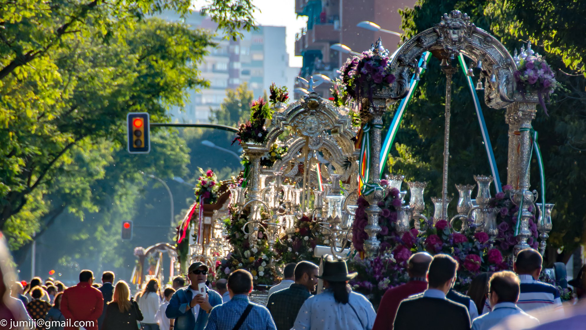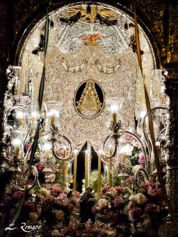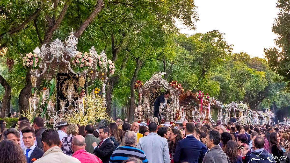 Rezo del Santo Rosario en el monumento a la Virgen del Rocio. #MagnaRociera