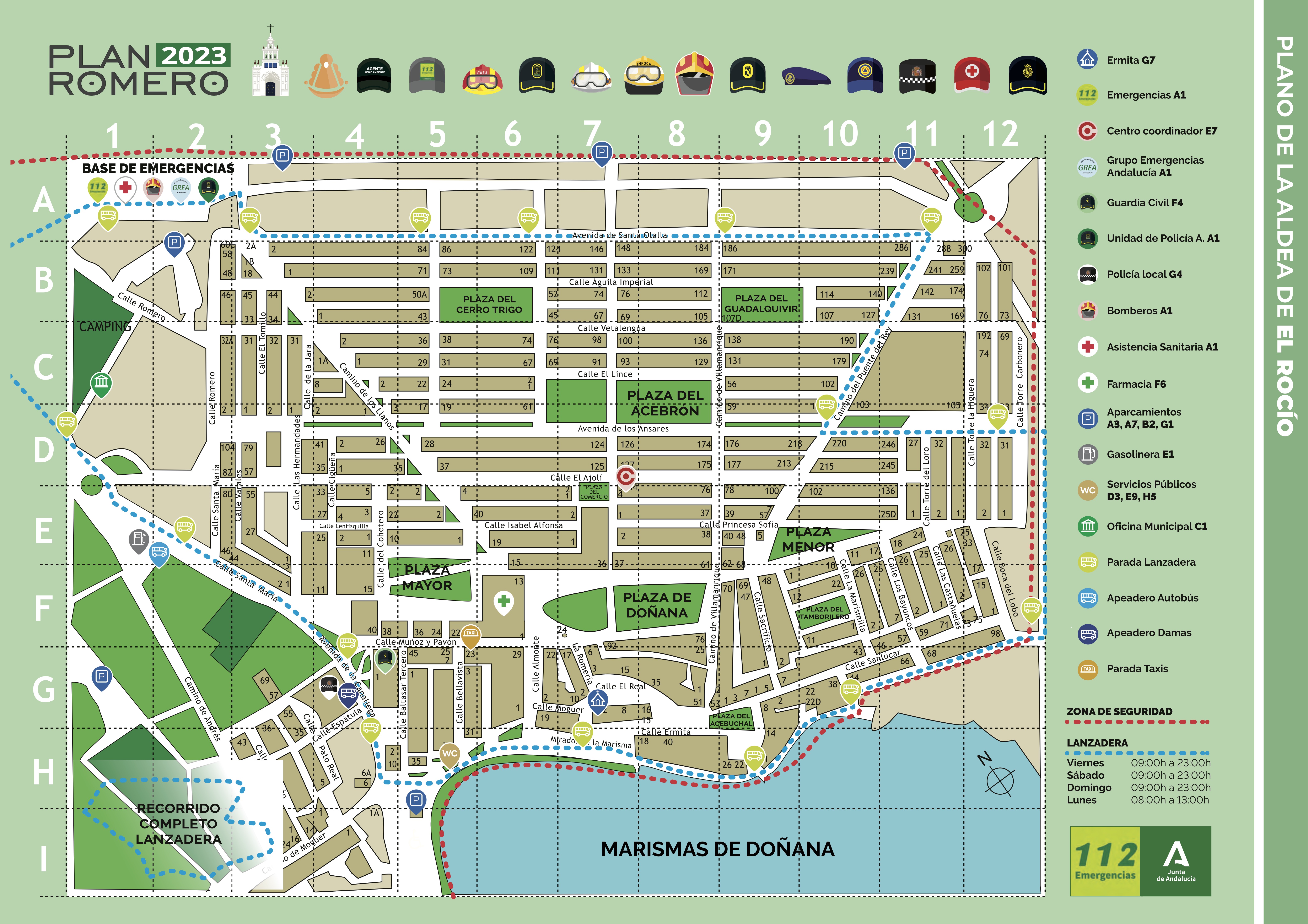 Mapa creado por Alfonso Díaz Marín para facilitaros la búsqueda en la aldea del Rocío de las casas de Hermandad, fuentes de agua potable, aparcamientos, paradas de BUS-lanzadera, Taxi, emergencias, retirada de grúa y otros puntos de interés para lo cual me desplacé personalmente el martes 31 mayo y contacto además con Hermandades, Ayuntamiento, policía local para actualizar a diario y completar los datos .